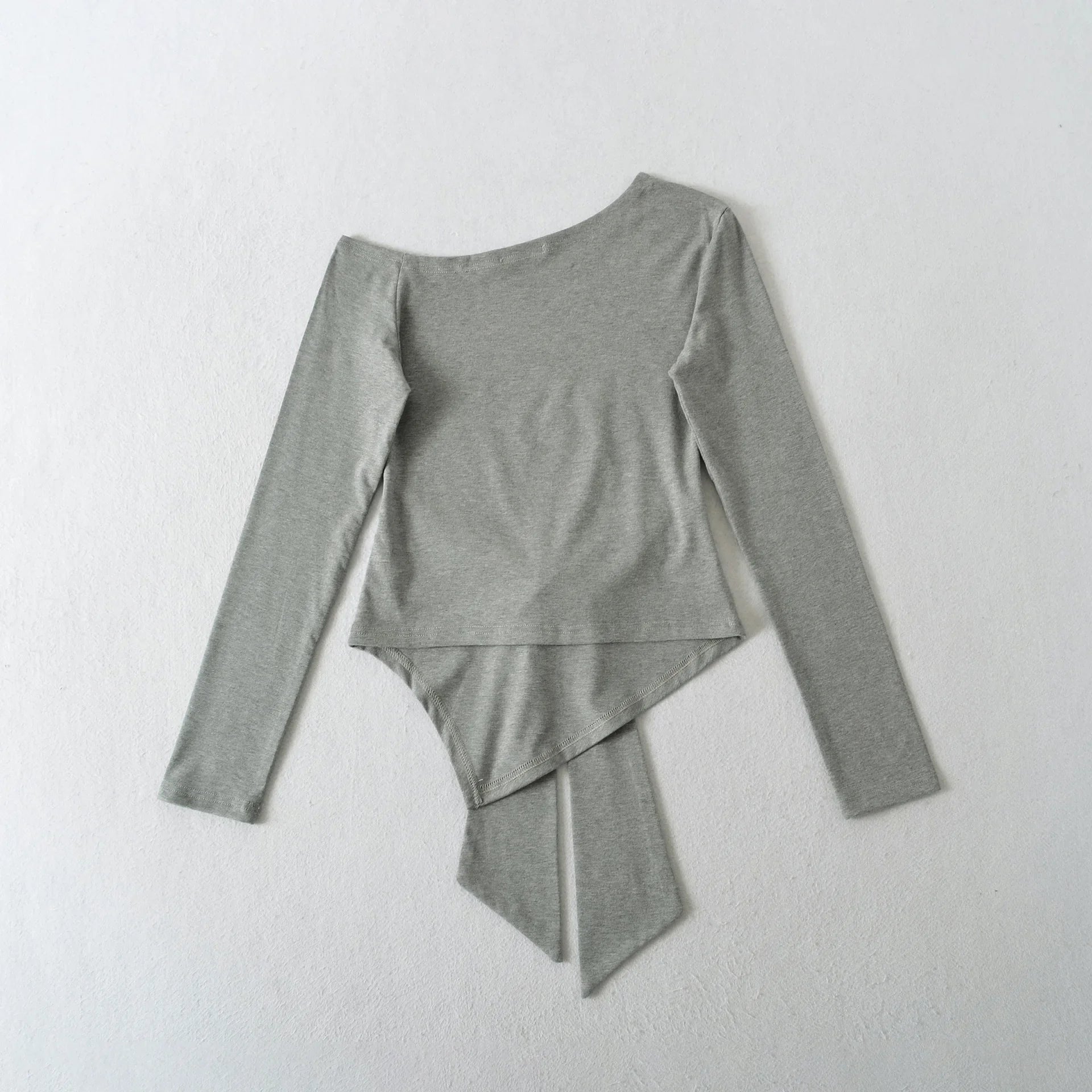 Sexy Long Sleeve T-Shirt Women's Waist Cinched Shoulder Bared Strap Design Autumn 2025 Irregular Halter Neck Top for Trendy Girl