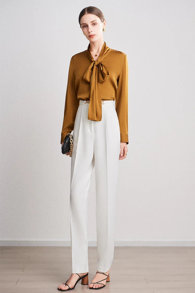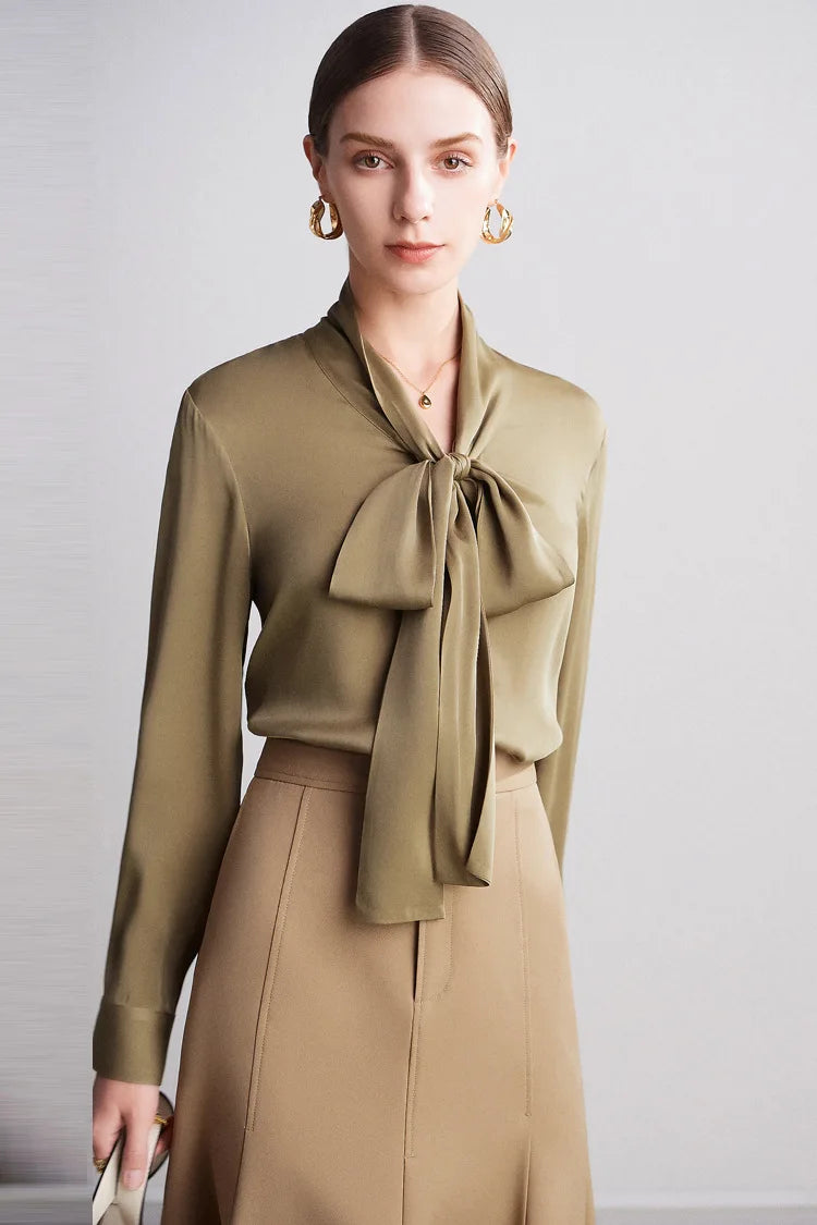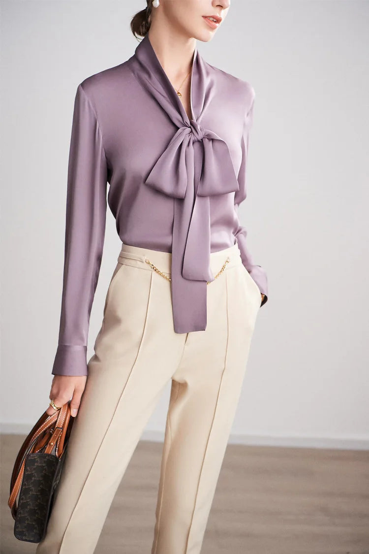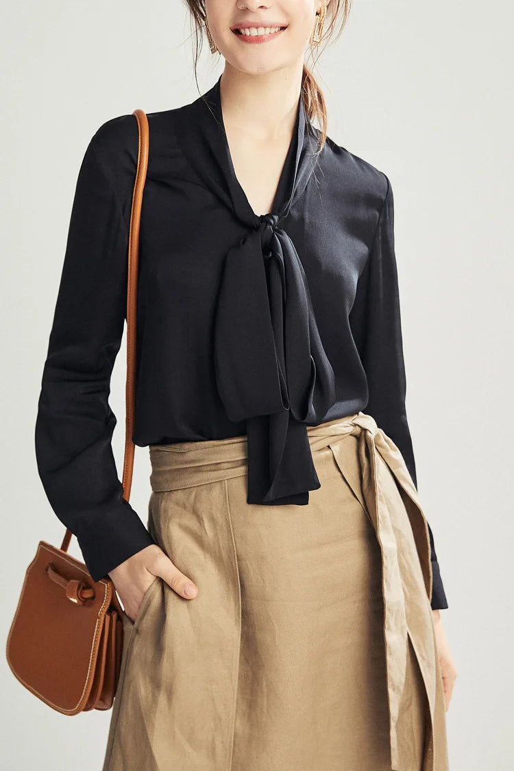 Silk Shirt Women's Thick Temperament Streamer 2025 Spring and Summer New Mulberry Silk Lace-up Design Shirt Long-sleeved Top