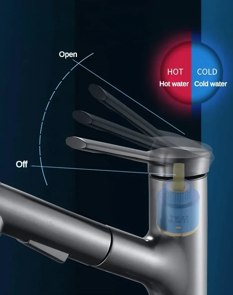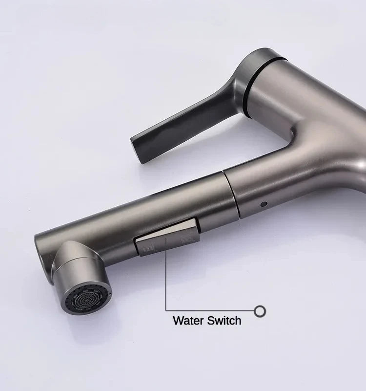 Single Handle Dual Hole Hot Cold Brass Washbasin Faucet 3 Function Stream Sprayer Pull Out Basin Sink Mixer Tap for Bathroom