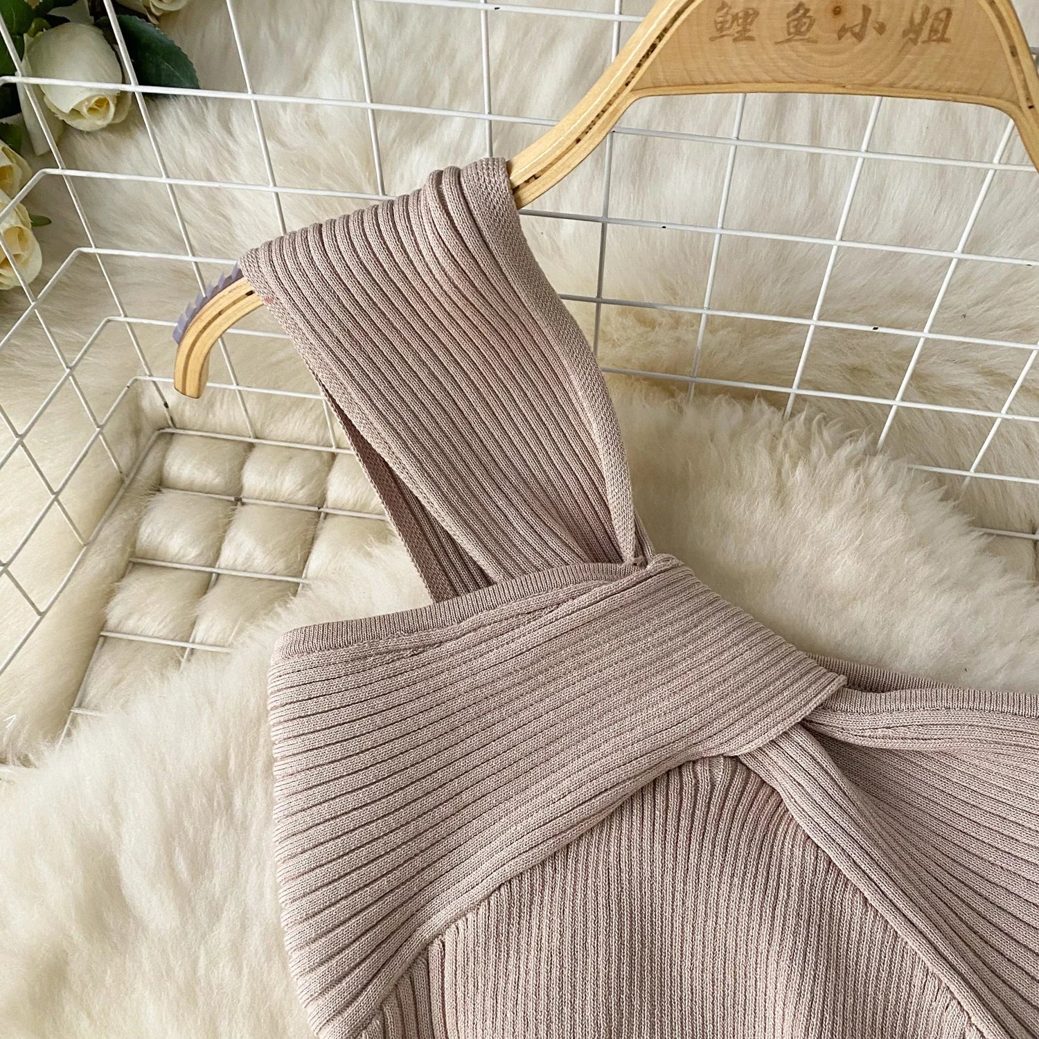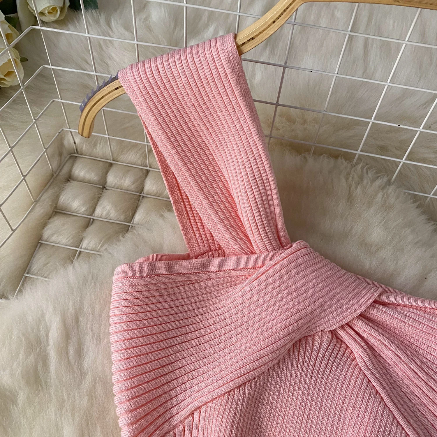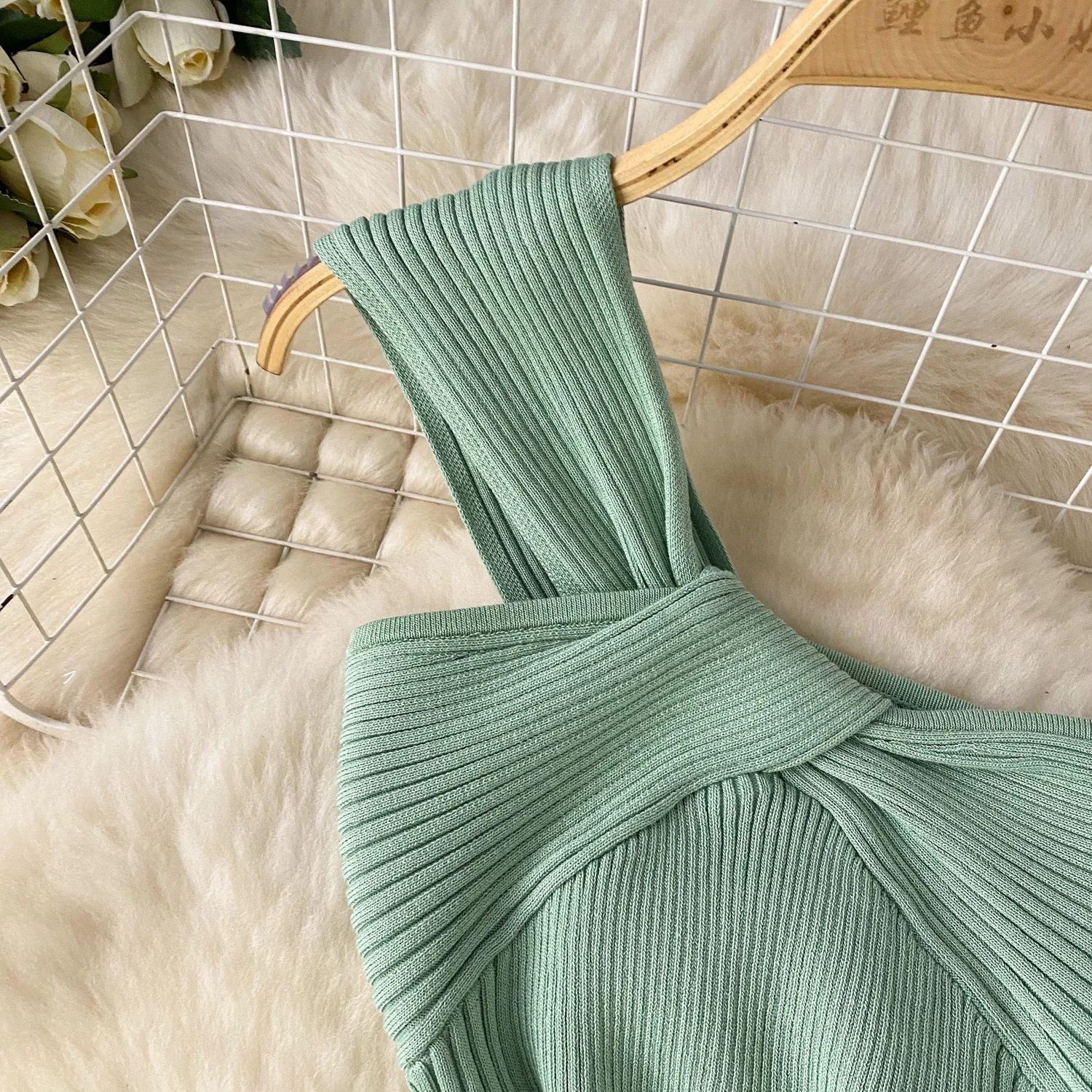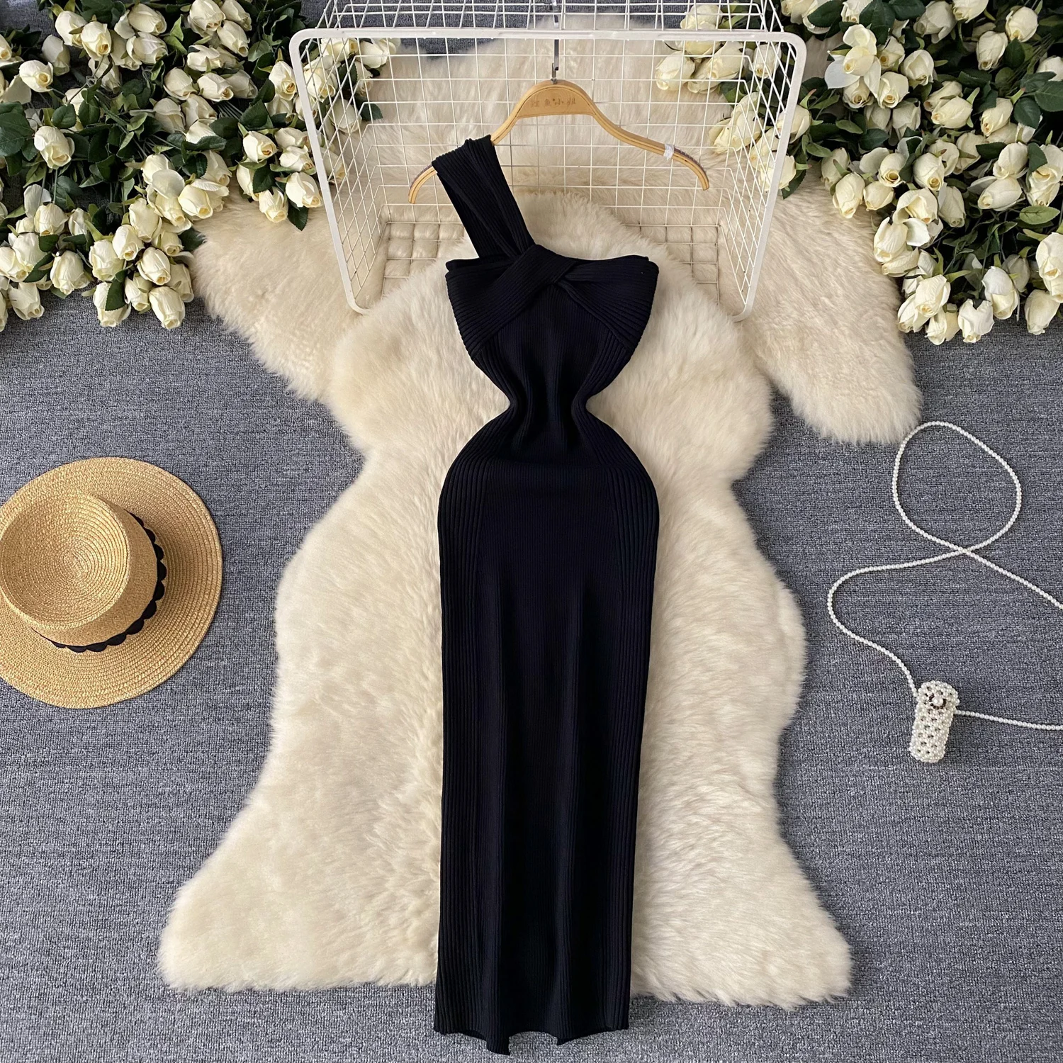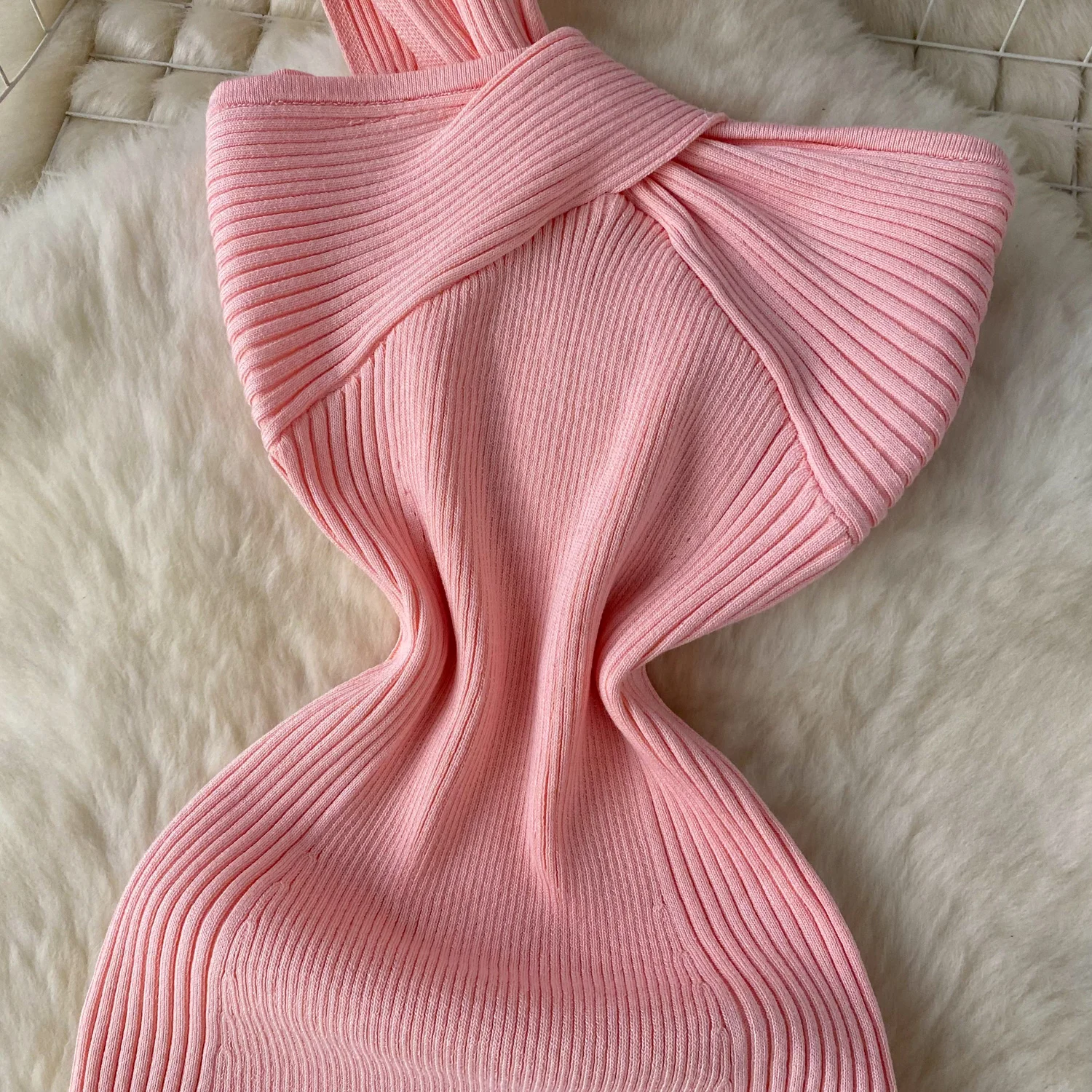 SINGREINY Einzelnen Schulter Tinte Stricken Kleid Backless Tank Gestreiften Schlank Bodycon Sommerkleid Frauen Sommer Beachwear Sexy Chic Vestidos