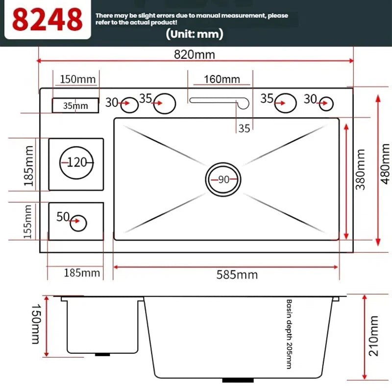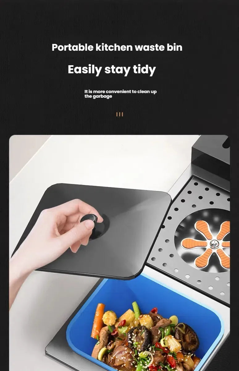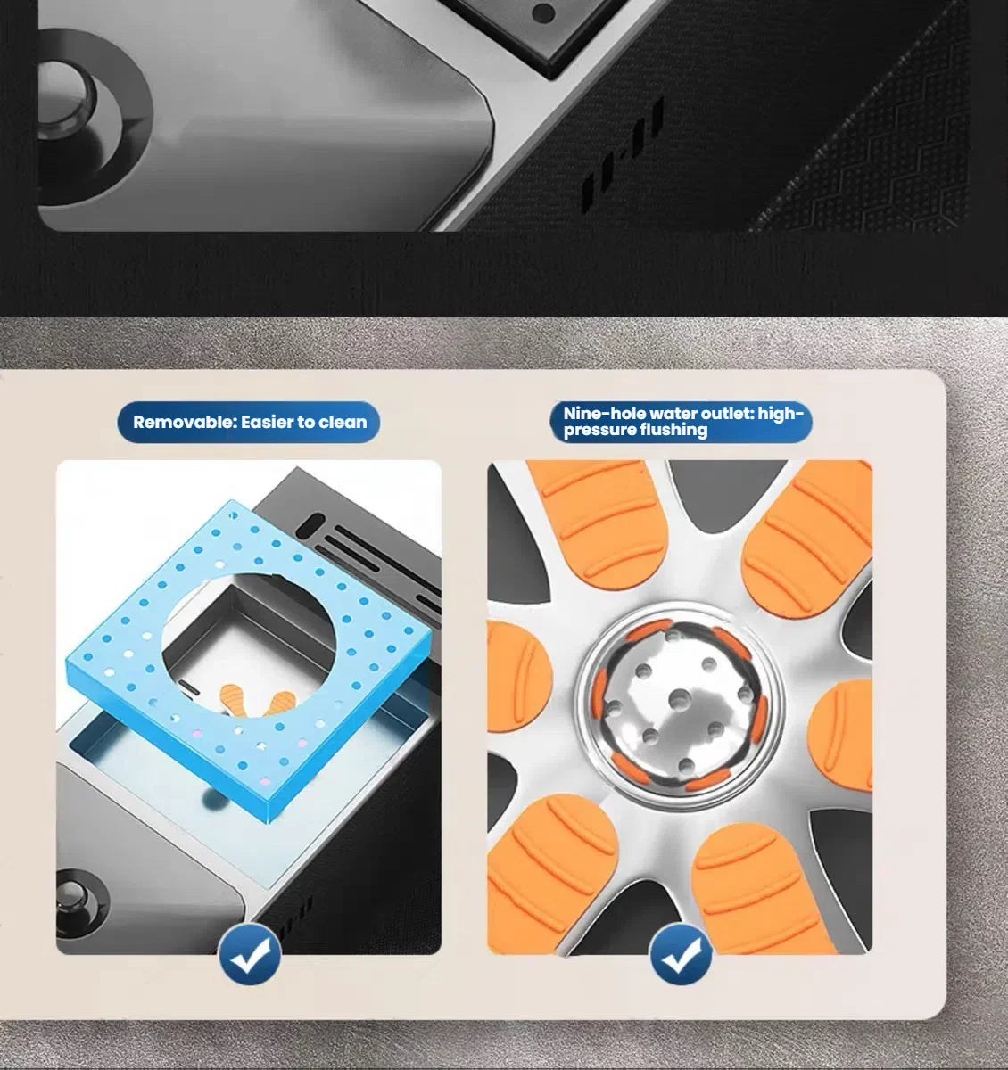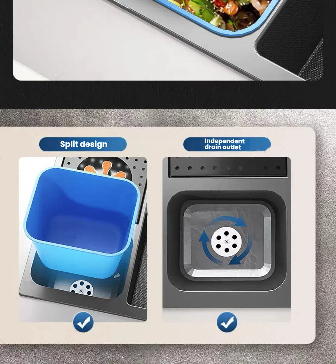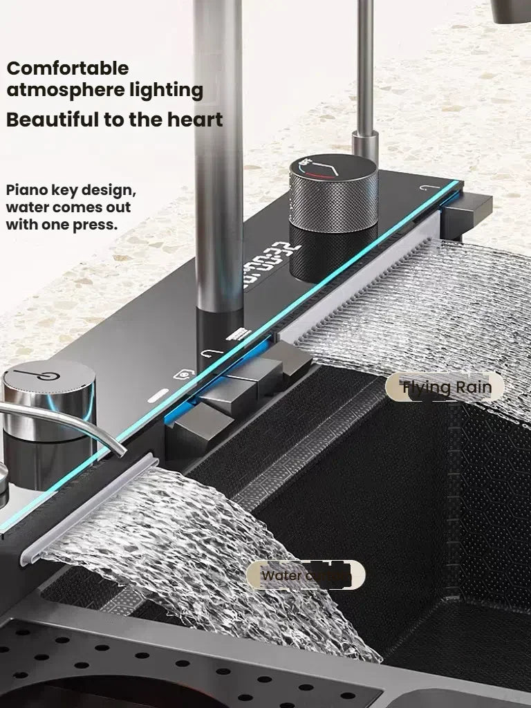 Smart Digital Display Waterfall Faucet Kitchen Sink With Knife Holder and Trash Can Household Wash Dish Basin Large Single Slot