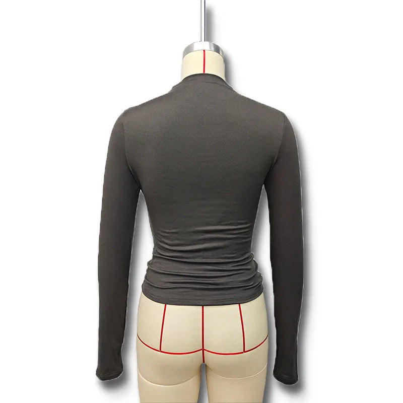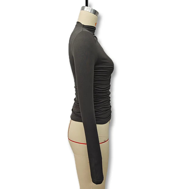 Solid Color High Neck Elegant Tops For Woman Fashion Chic Pleated Long Sleeves Slim Shirt Spring Autumn Ladies Sexy Blouses