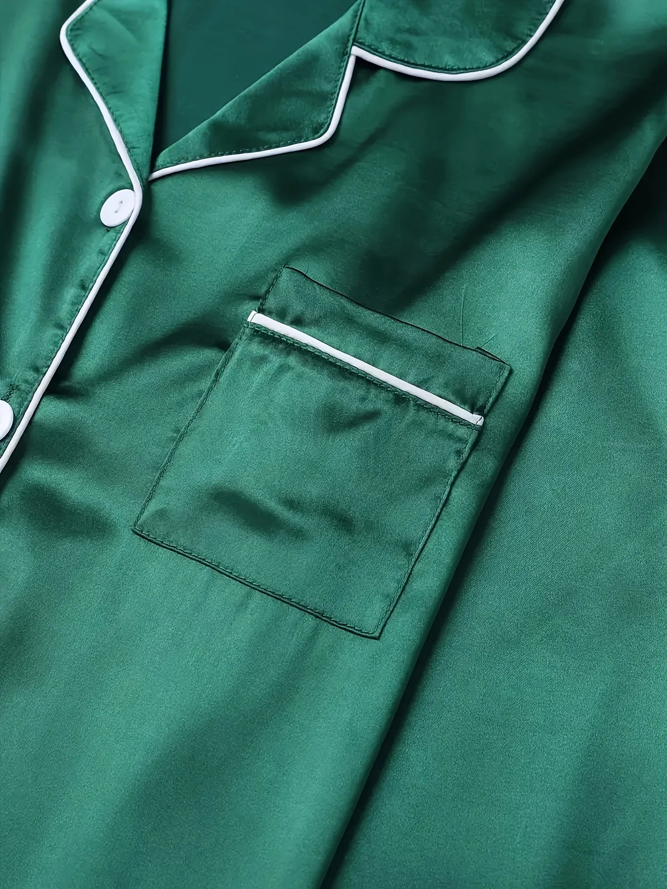 Solides Pyjama-Set mit langen Ärmeln, Knopfleiste, Revers, Oberteil und Hose, Pyjama-Set, Damen-Nachtwäsche und Loungewear