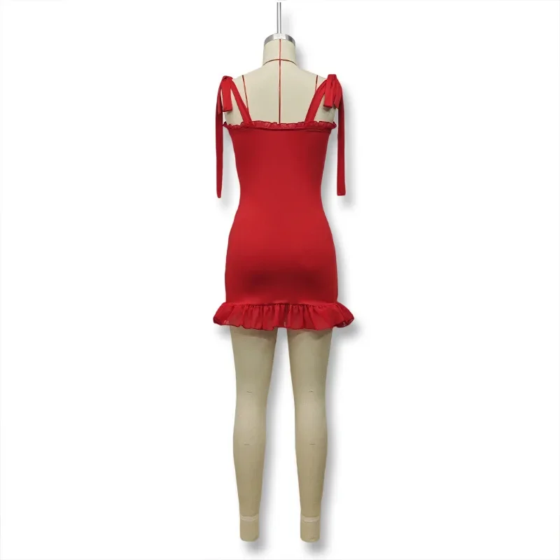 Sommer 2025, modisches reines Farbdesign, sexy Slim-Fit, Empire-Taillengurt-Kleid, Minirock, ein Schulterkleid für Frauen