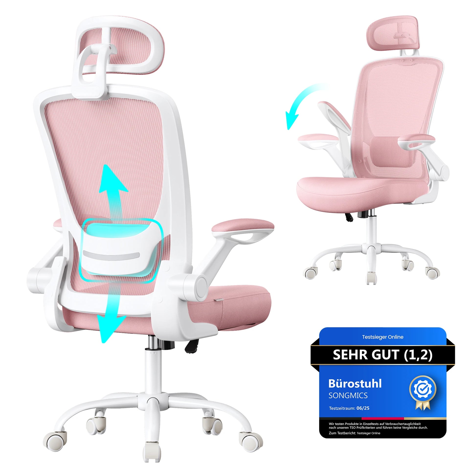SONGMICS Bürostuhl ergonomisch, Schreibtischstuhl, Drehstuhl mit Mesh, gepolsterte Lendenstütze, Wippfunktion