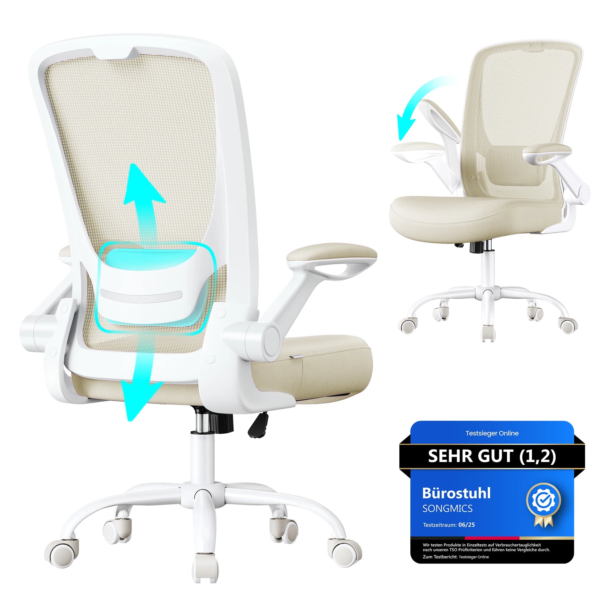 SONGMICS Bürostuhl mit hochklappbaren Armlehnen, Schreibtischstuhl mit Netzbespannung, ergonomischer Computerstuhl