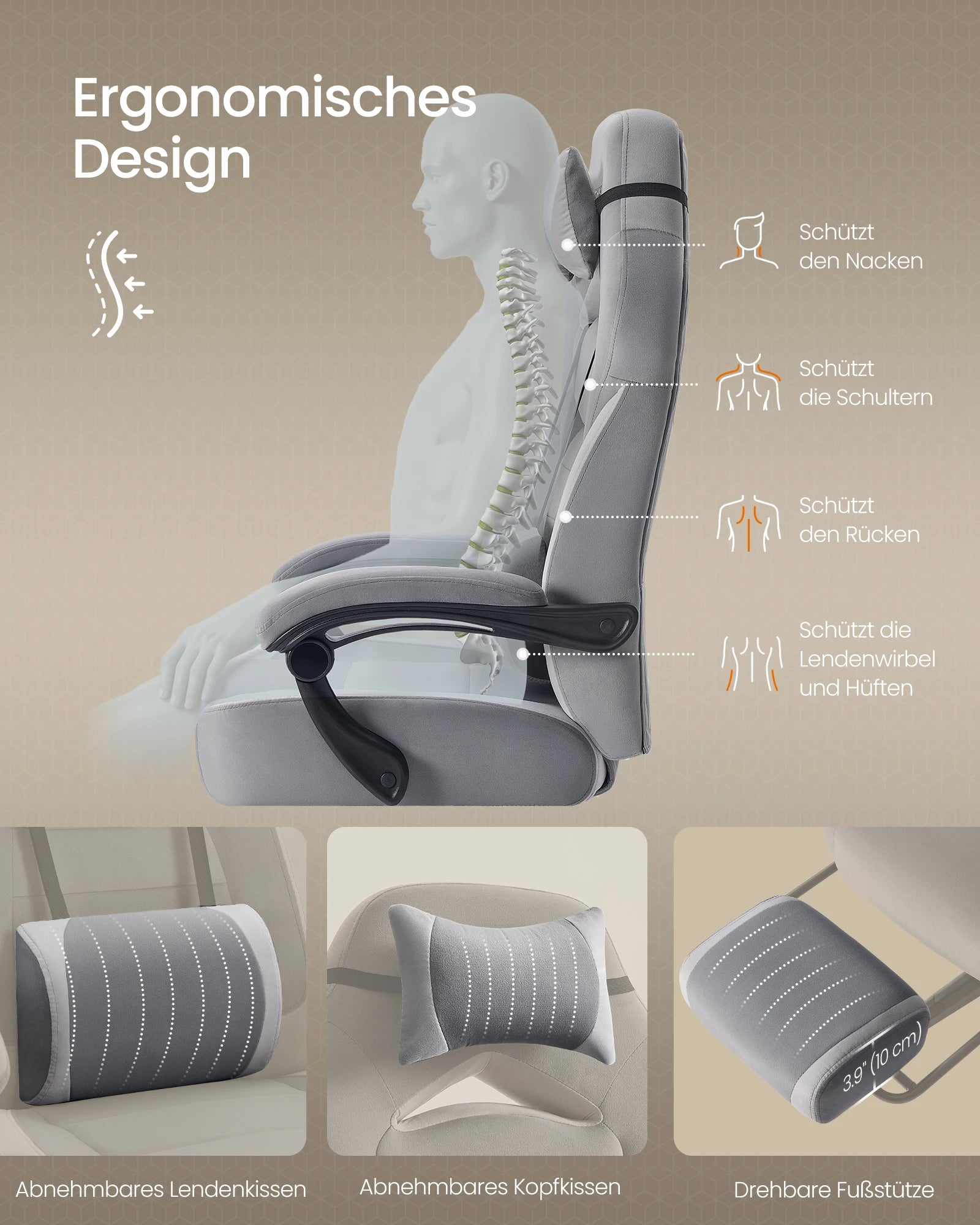 SONGMICS Gaming-Stuhl, Bürostuhl, Computerstuhl, ergonomisches Design, mit Fußstütze