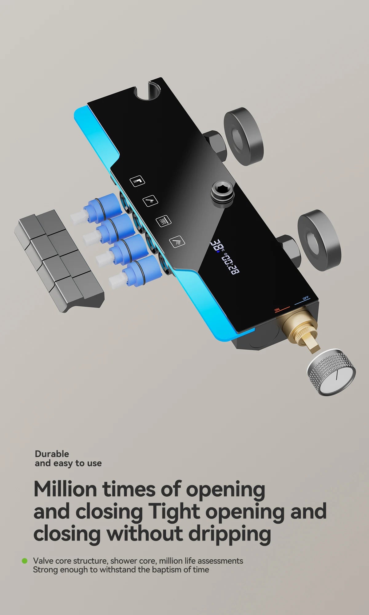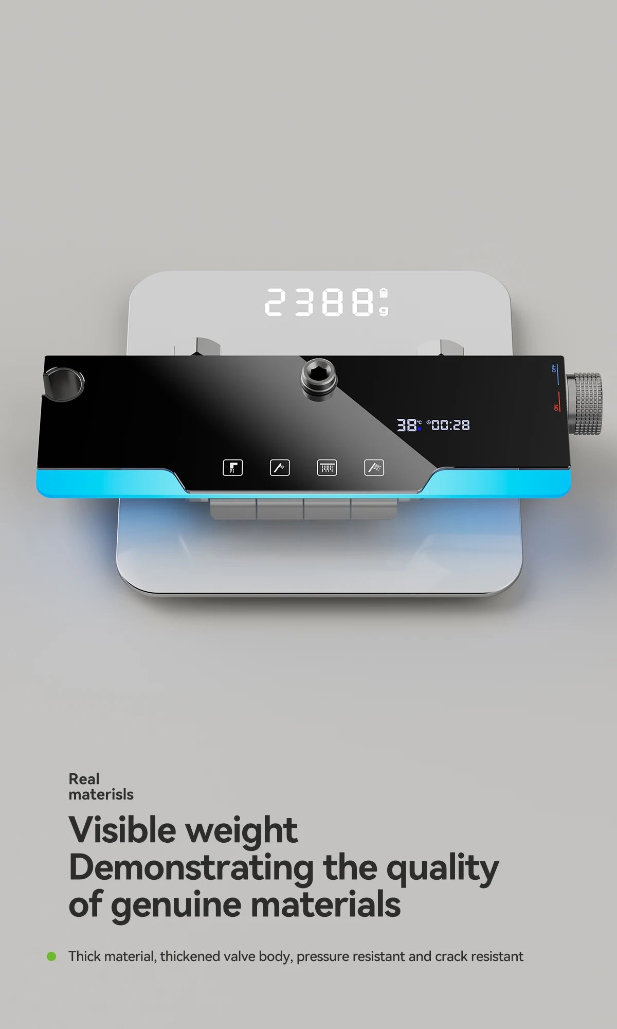 Space aluminum digital display atmosphere light shower shower set, 4-speed turbocharged bathroom shower