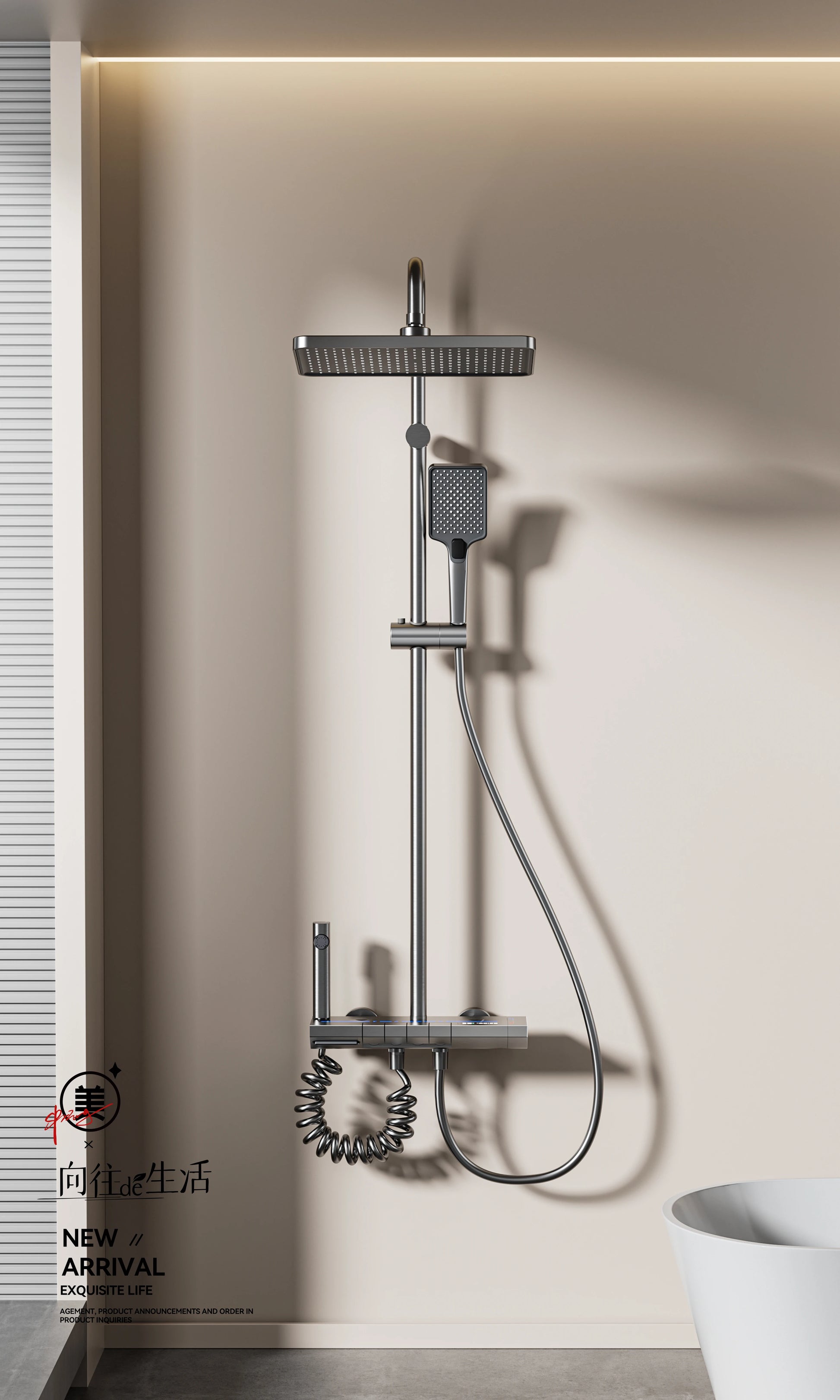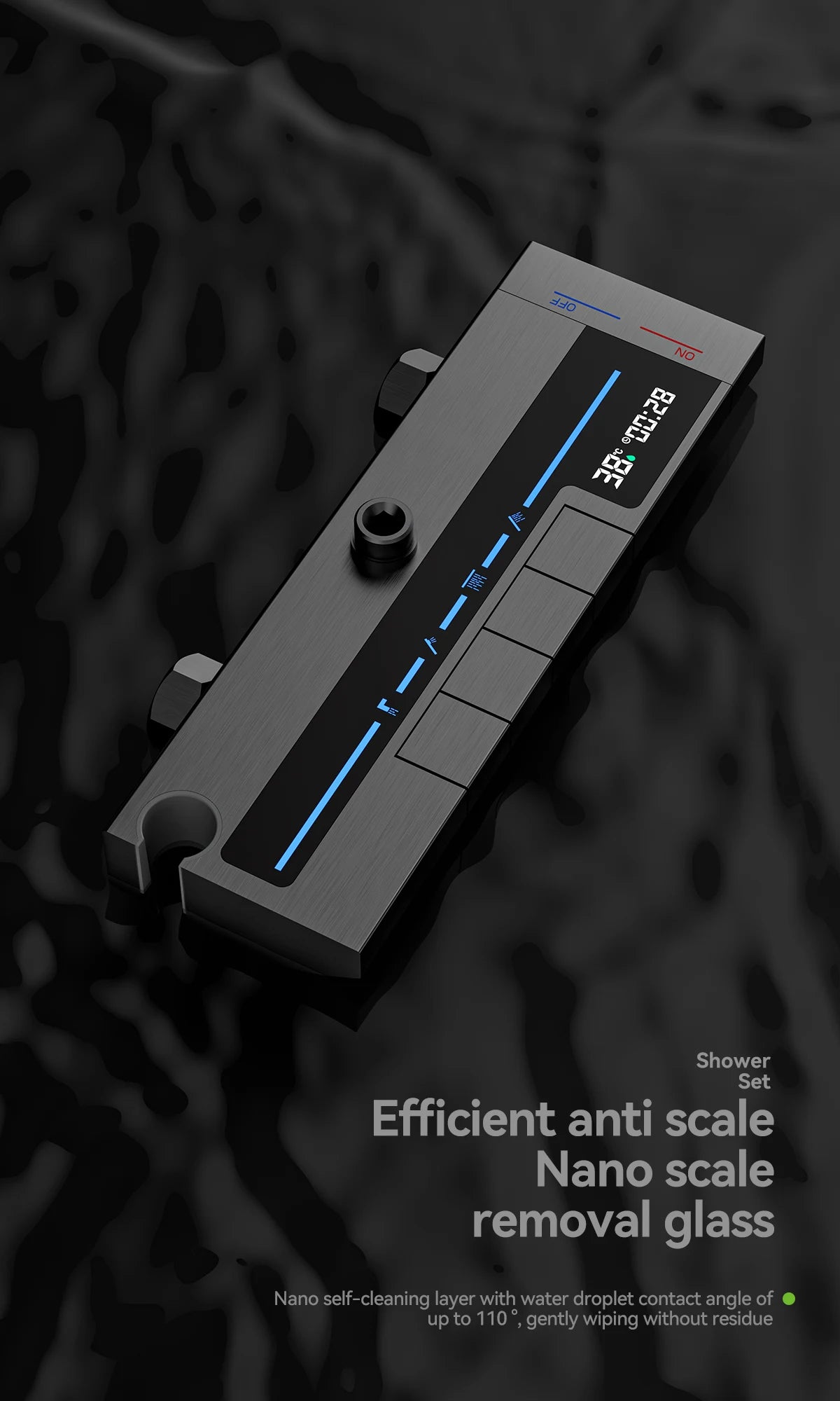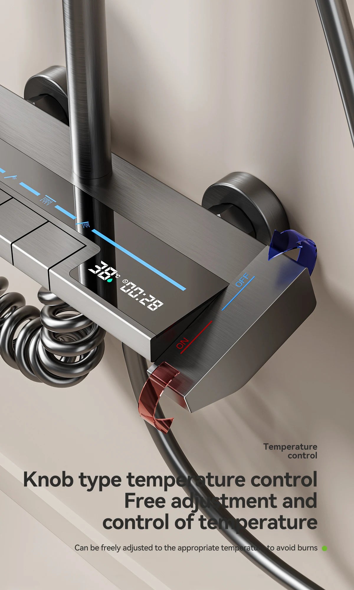 Space Aluminum Shower Set Digital Display Faucet Set , Piano Button With Ambient Light Bathroom Faucets Shower Head