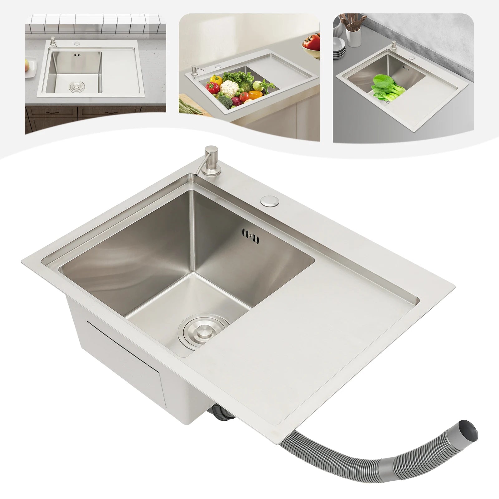 Spüle aus Edelstahl 304, großes Fassungsvermögen, verschleißfest, einfach zu installieren, für Restaurants/Wäsche/Geschäfte/Cafes