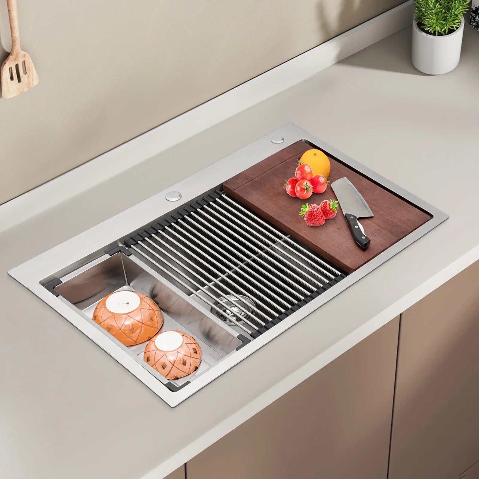 Stahlspüle, 304 Edelstahl, multifunktionale Küchenspüle, Drop-In-Spüle, 33 Zoll Drop-in-Küchenspüle, Workstation, Edelstahlspüle