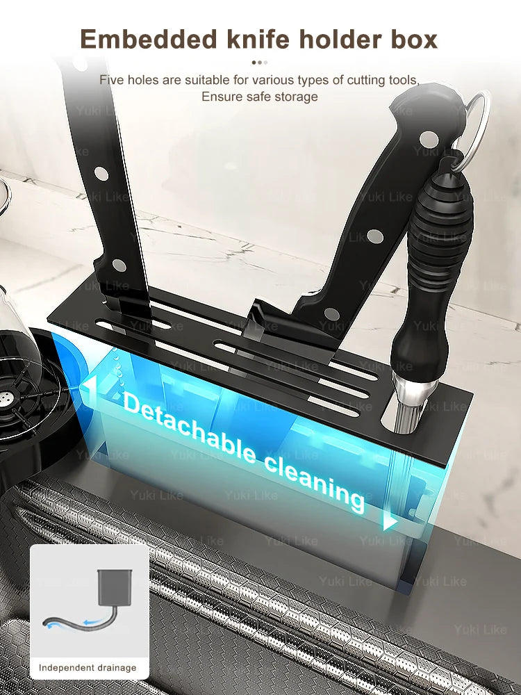 Stainless Steel Kitchen Sink Embossed Large Single-Slot With Kitchen Faucet Multifunctional Washbasin for Apartment
