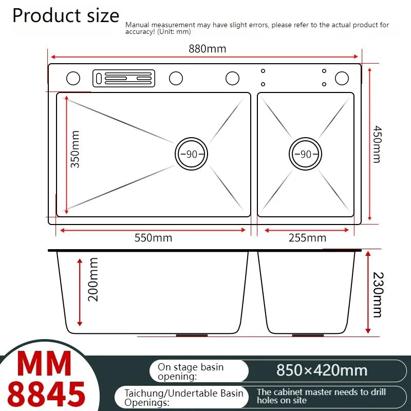Stainless Steel Kitchen Sink Large Double Slot Waterfall Outlet Convenient for Dish and Vegetable Washbasin