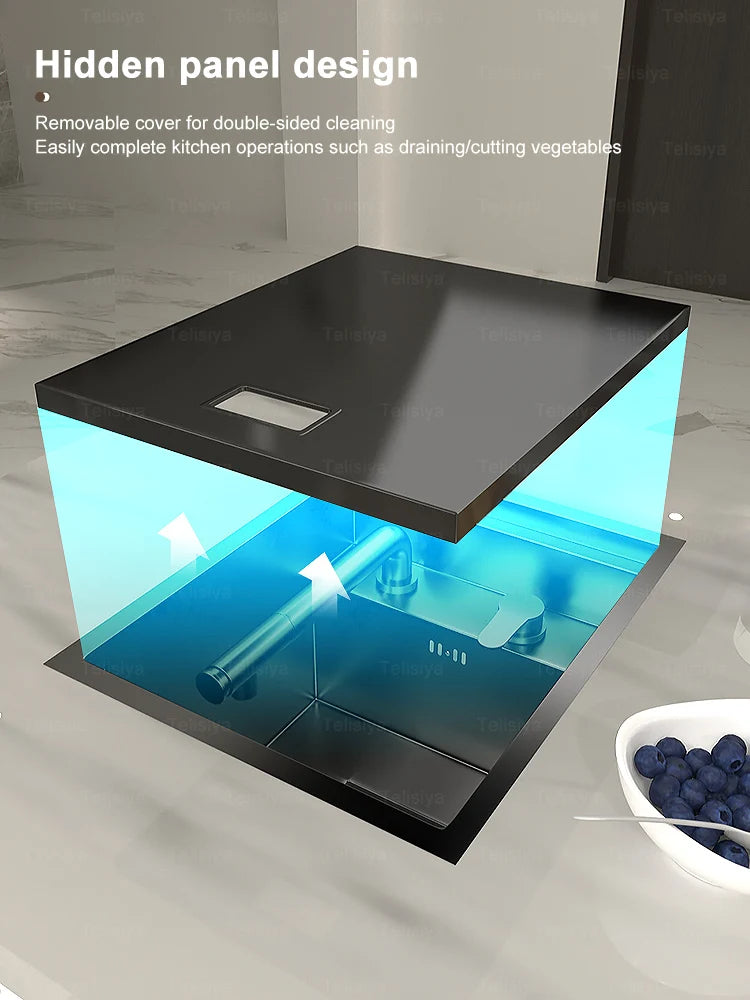 Stainless Steel Kitchen Sink Multifunctional Hot and Cold Water Adjustment Hidden Mini Sink Bar Apartment Hand Wash Basin