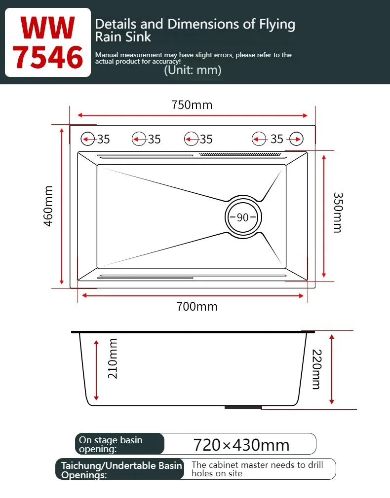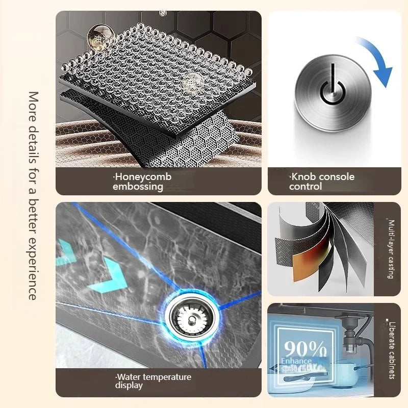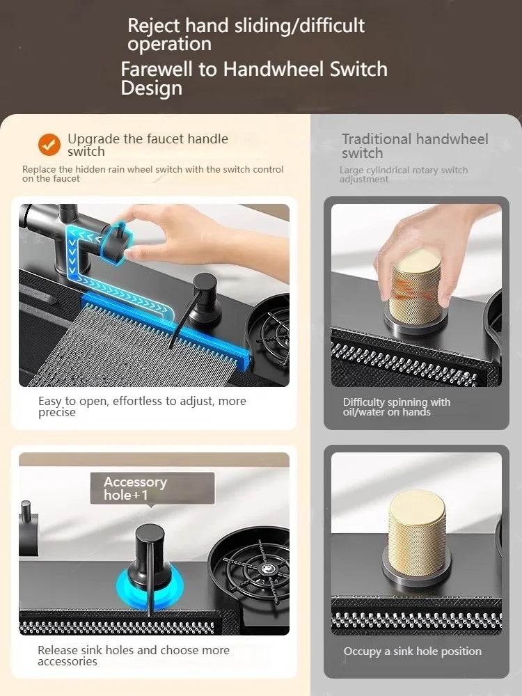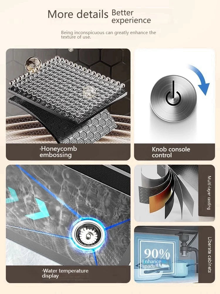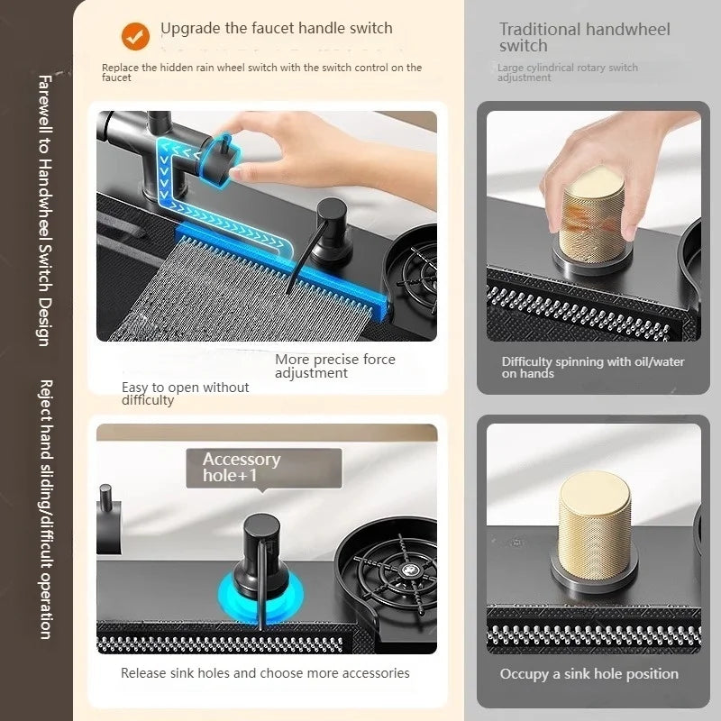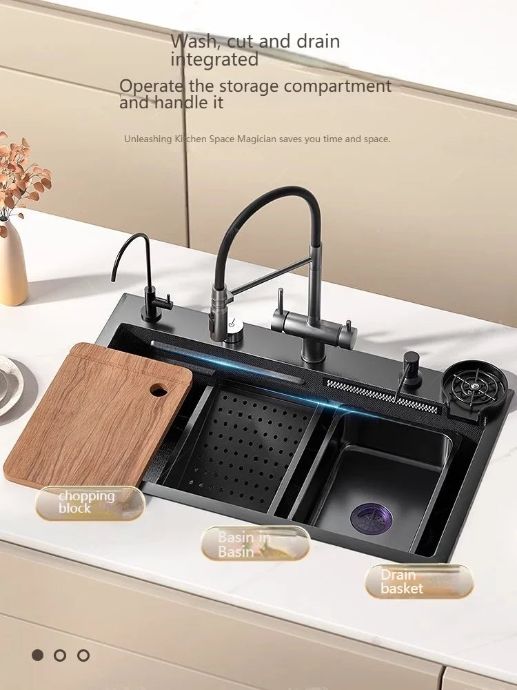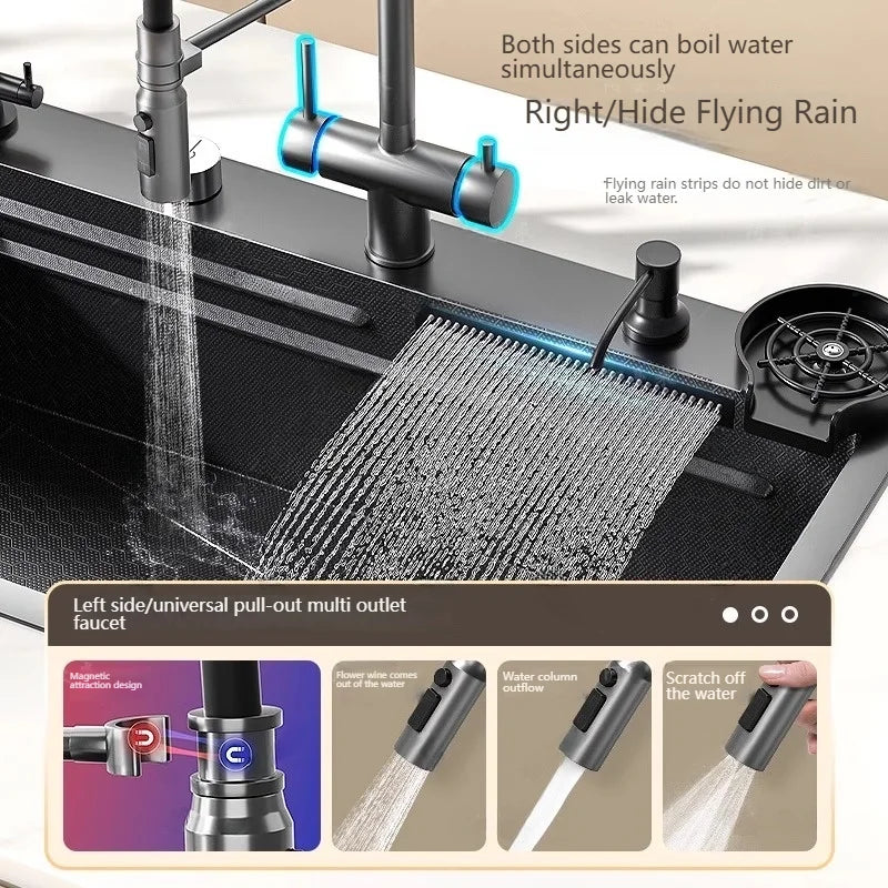Stainless Steel Kitchen Sink With Waterfall Nano Embossed Large Single Slot Vegetable and Dishwashing Sinks Udermount Basin