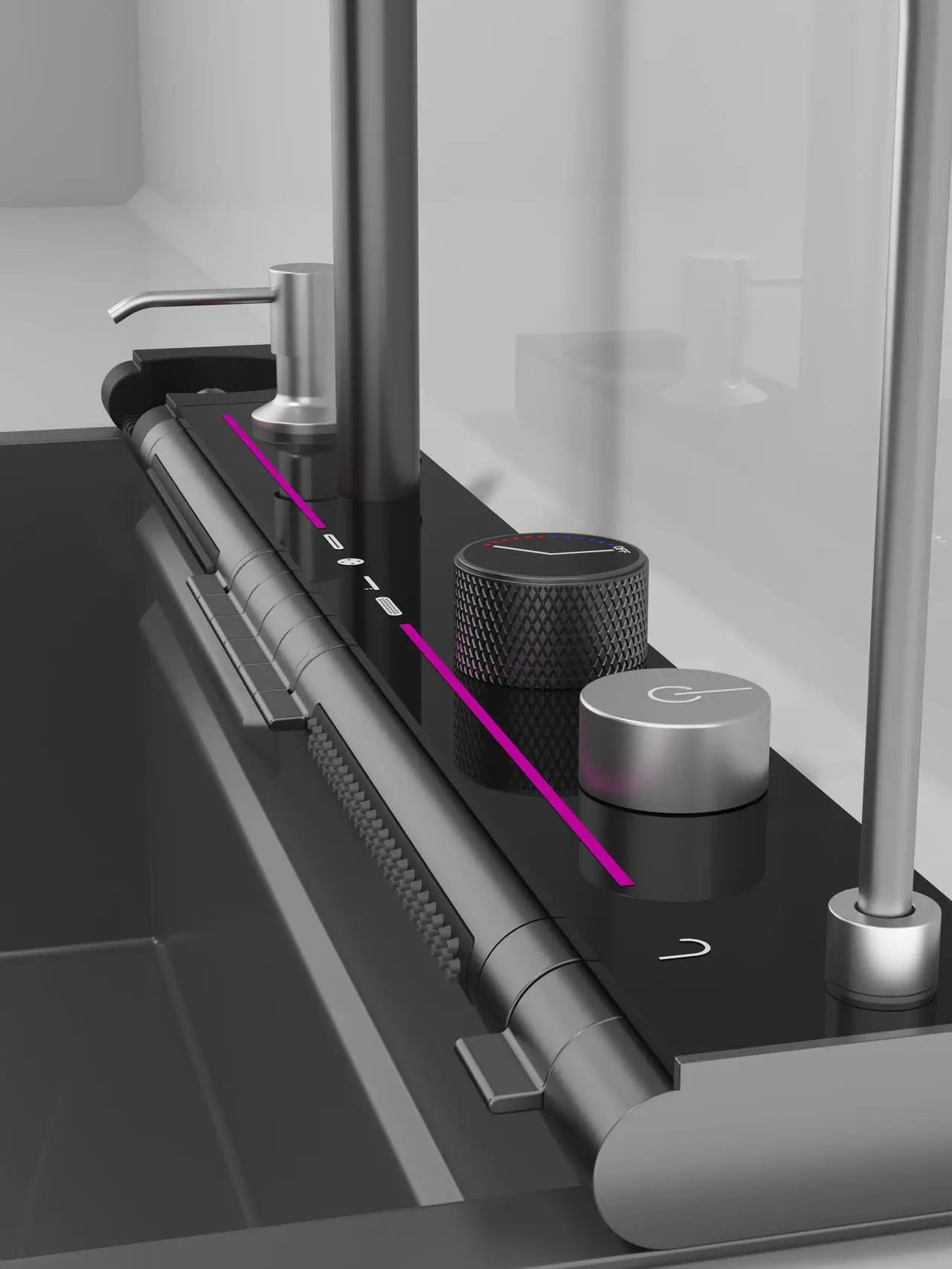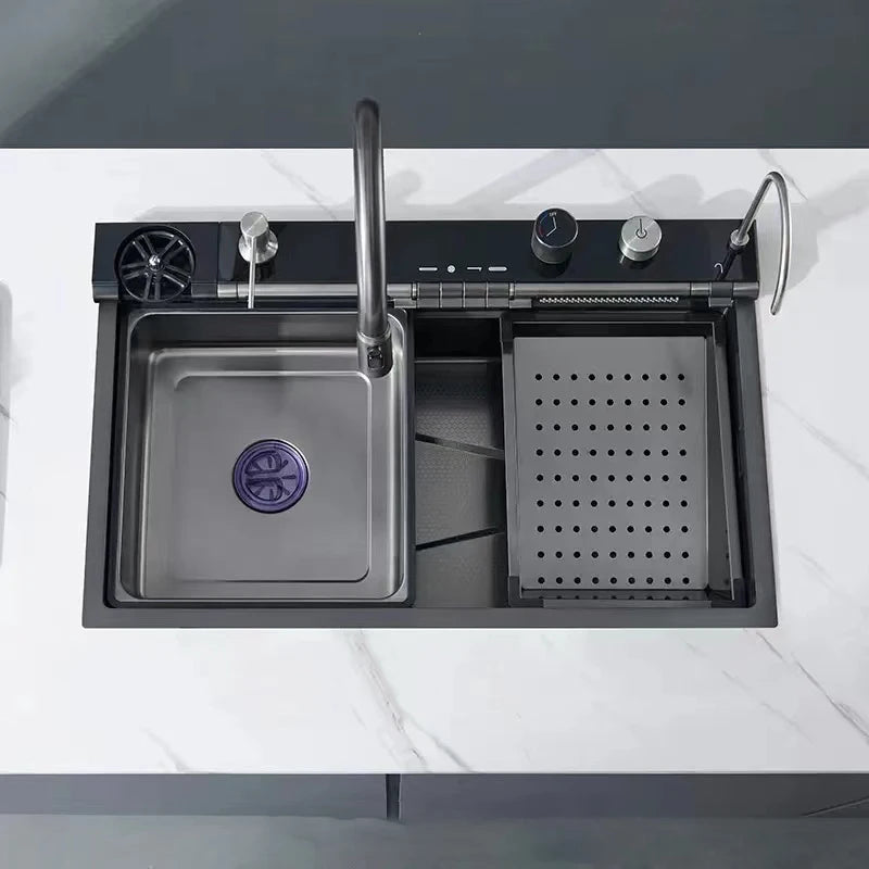 Stainless Steel Kitchen Waterfall Sink Embossed Digital Display Large Single Slot All-in-one Faucet Multi-functional Wash Bain