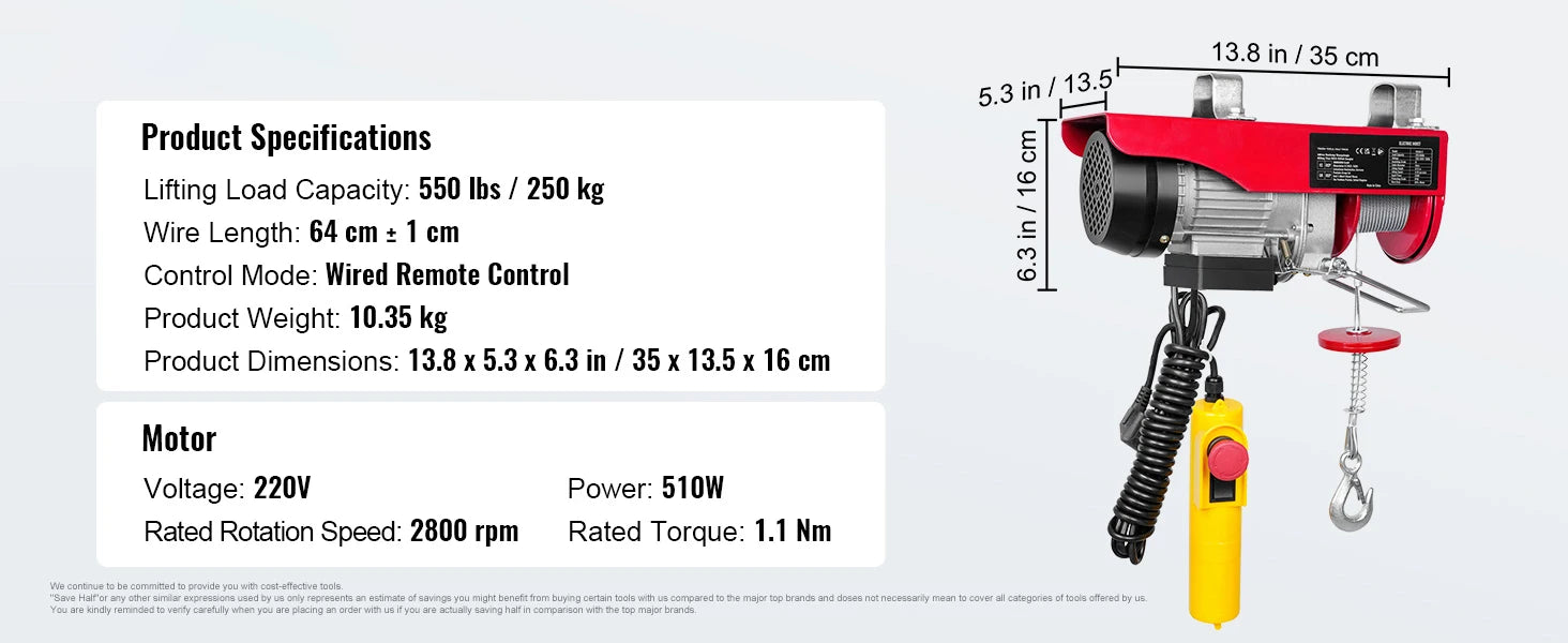 SucceBuy 880/1760/2640lbs Wired Electric Hoist with 40ft Lifting Height & Pure Copper Motor Electric Steel Wire Winch for Garage
