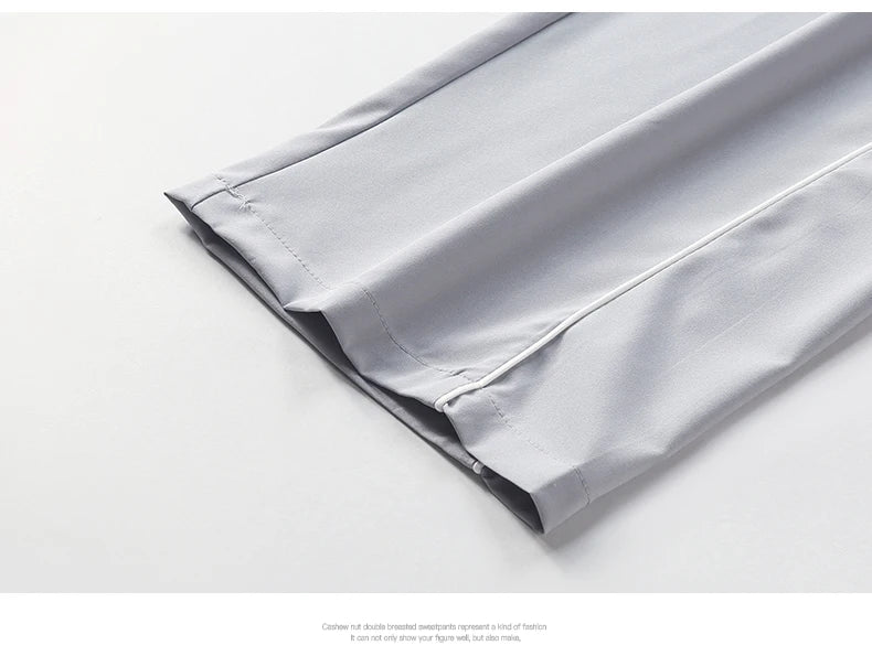 Summer ice silk thin section pants men's Hong Kong style loose splicing casual sports wide-legged pants elastic speed pants