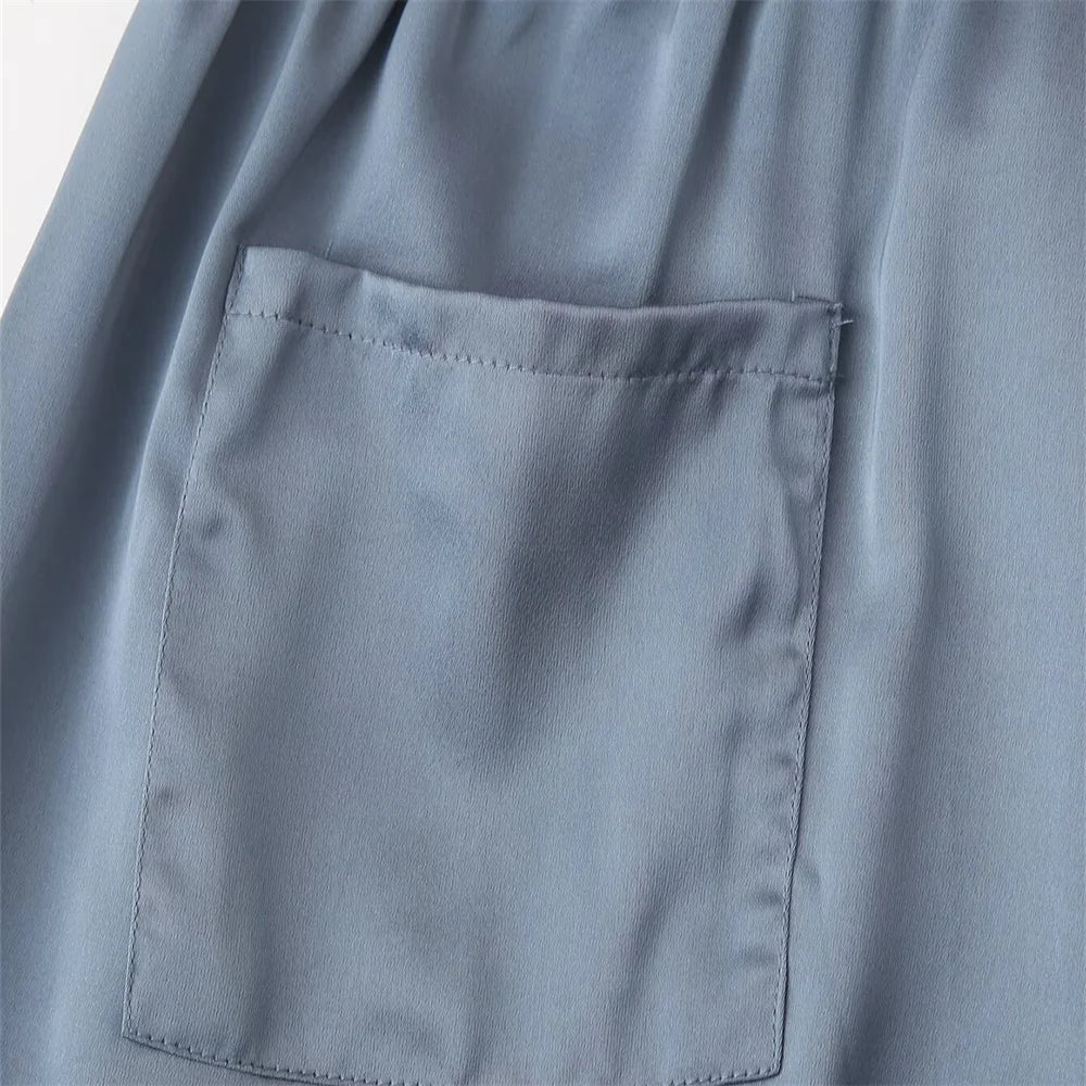 Summer New Product Women's Style Flip Collar with Beaded Embroidered Shirt, High Waist Straight Leg Pants Set