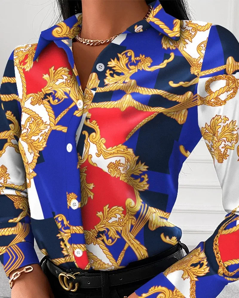 Summer New Women's Long-sleeved Shirt, Single-breasted Printed Shirts Fashion Casual Tops Camisa Female Chemise S-XXL