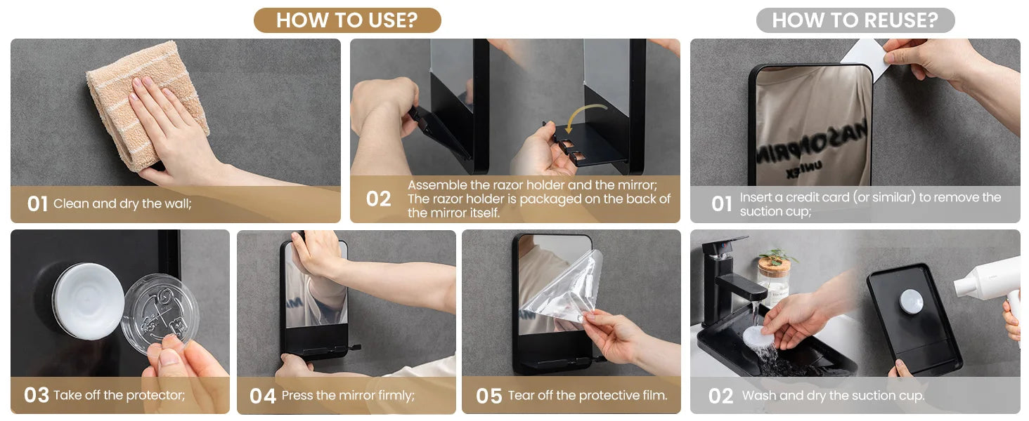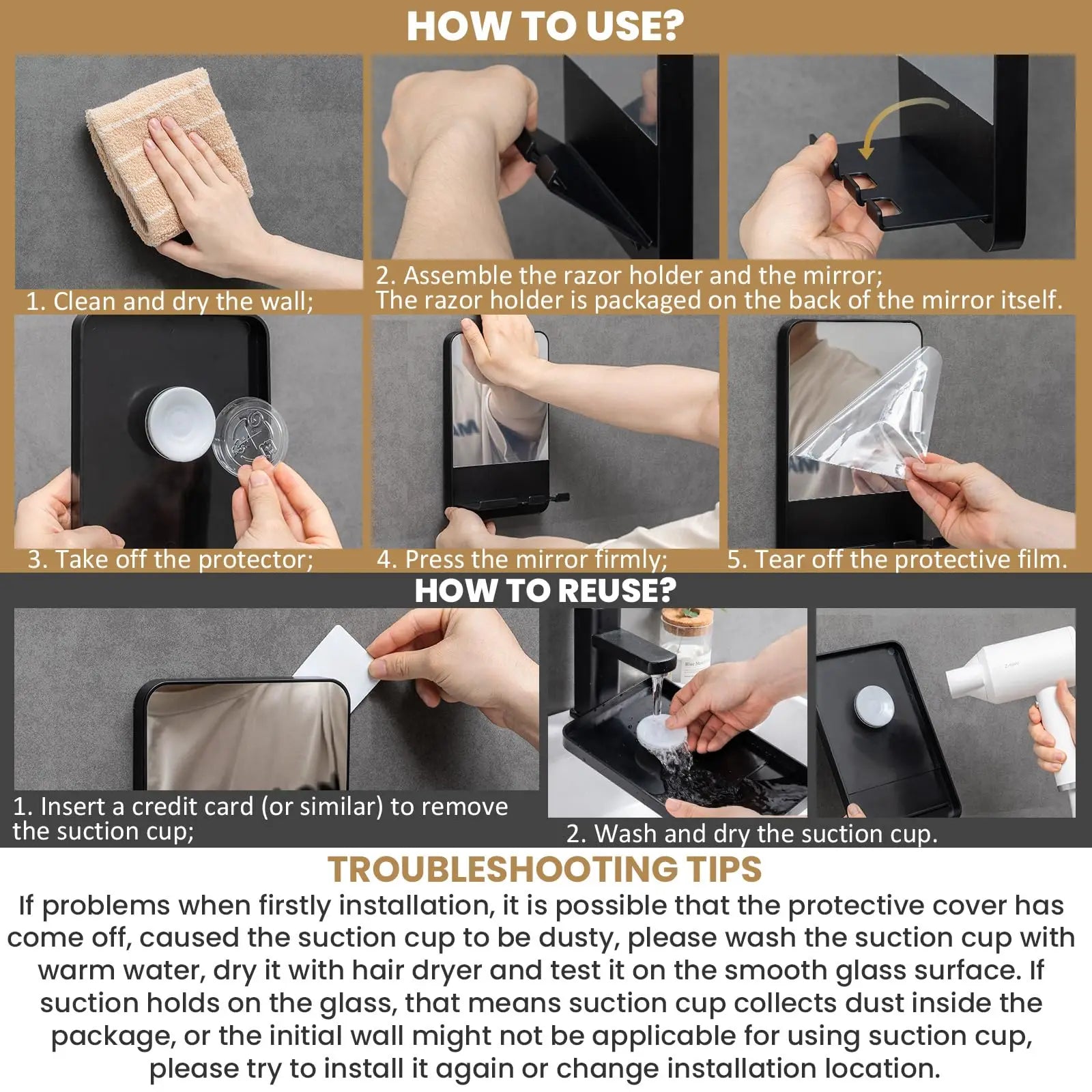 Special Feature: Shatterproof, Fogless, Removable, NO-Drilling