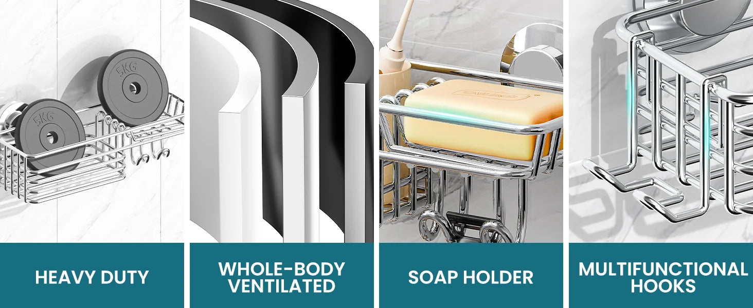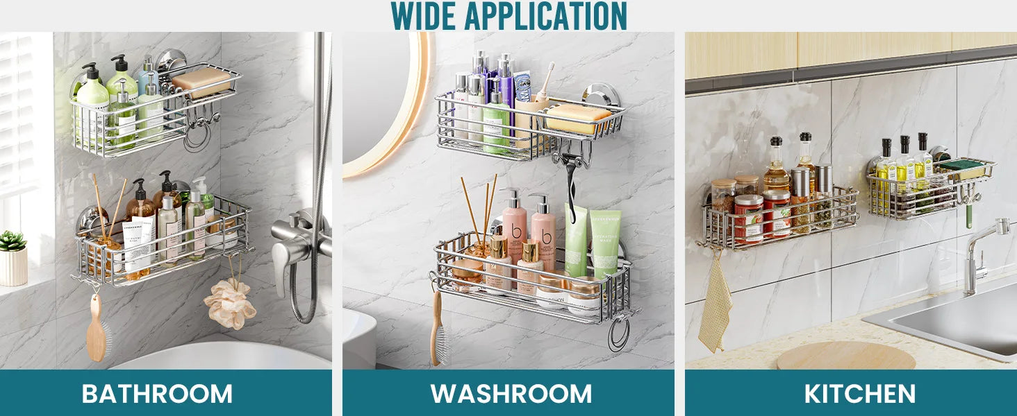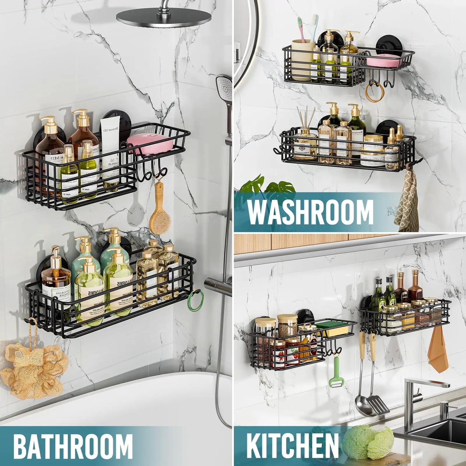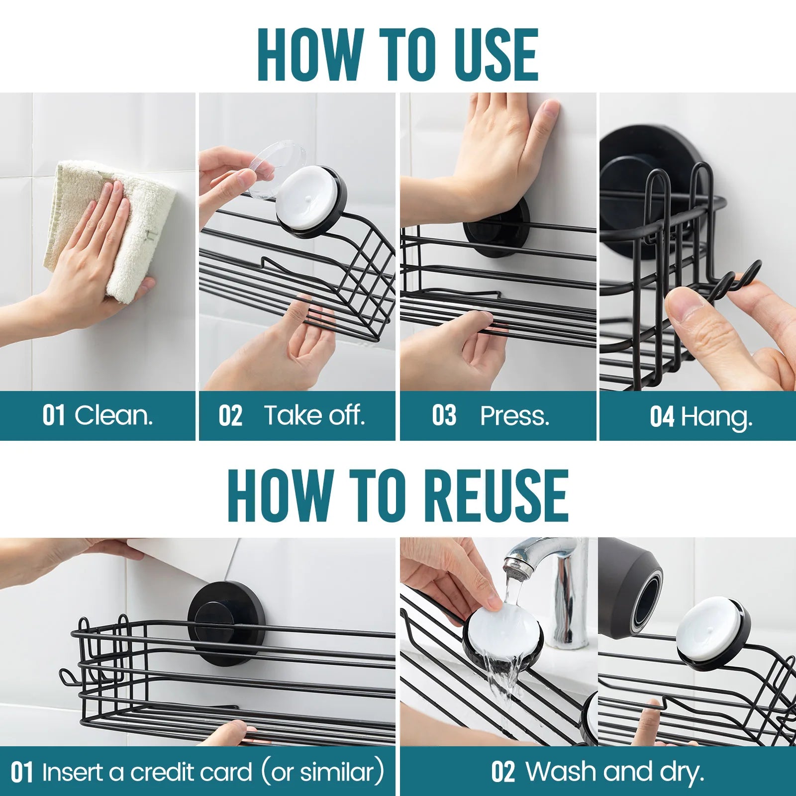 TAILI Dusch-Caddy mit Saugnapf, 2er-Pack mit Haken und Seifenhalter, robuster Badezimmer-Dusch-Organizer, ohne Bohren von Duschregalen