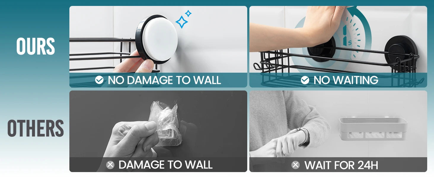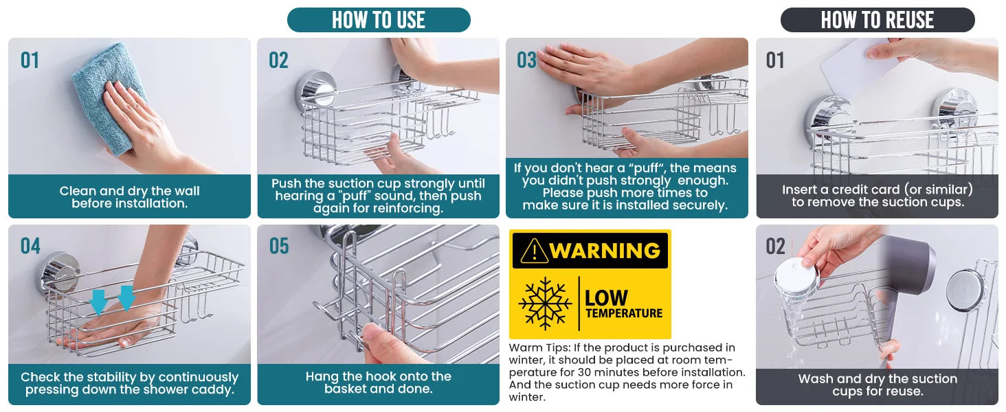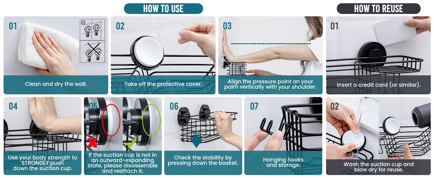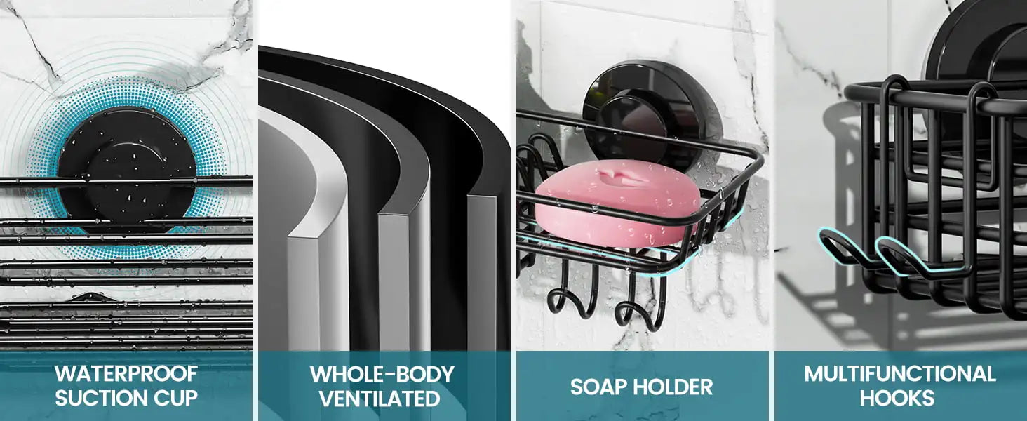 TAILI Dusch-Caddy mit Saugnapf, 2er-Pack mit Haken und Seifenhalter, robuster Badezimmer-Dusch-Organizer, ohne Bohren von Duschregalen