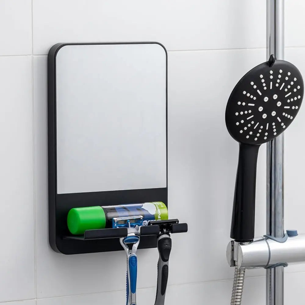 TAILI Dusch-Rasierspiegel mit Ablagefach, mit Rasiererhalter, abnehmbarer Saugnapf, bruchsicher, beschlagfreier Badezimmerspiegel