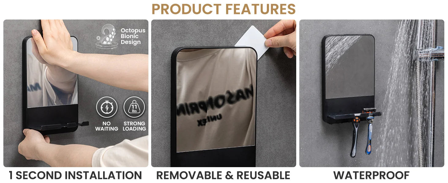 Special Feature: Shatterproof, Fogless, Removable, NO-Drilling