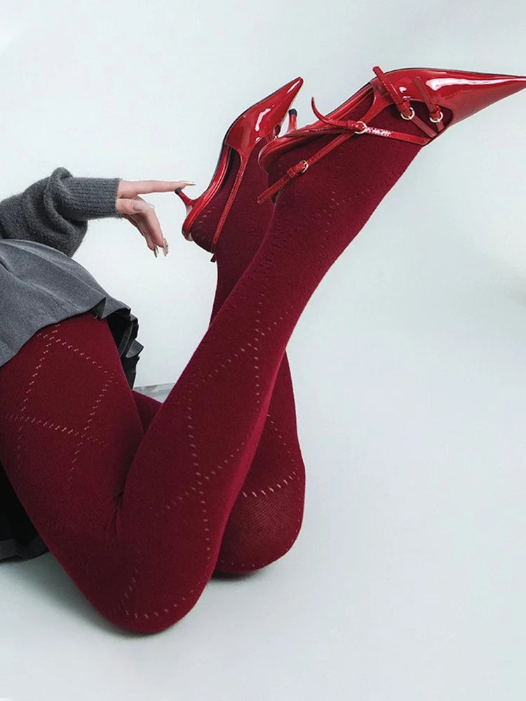 Talenza Autumn Winter Leggings Women's Solid High Waist Slim Sexy Warm Pantyhose Super Elastic Y2k Hollow Tights Women's Socks