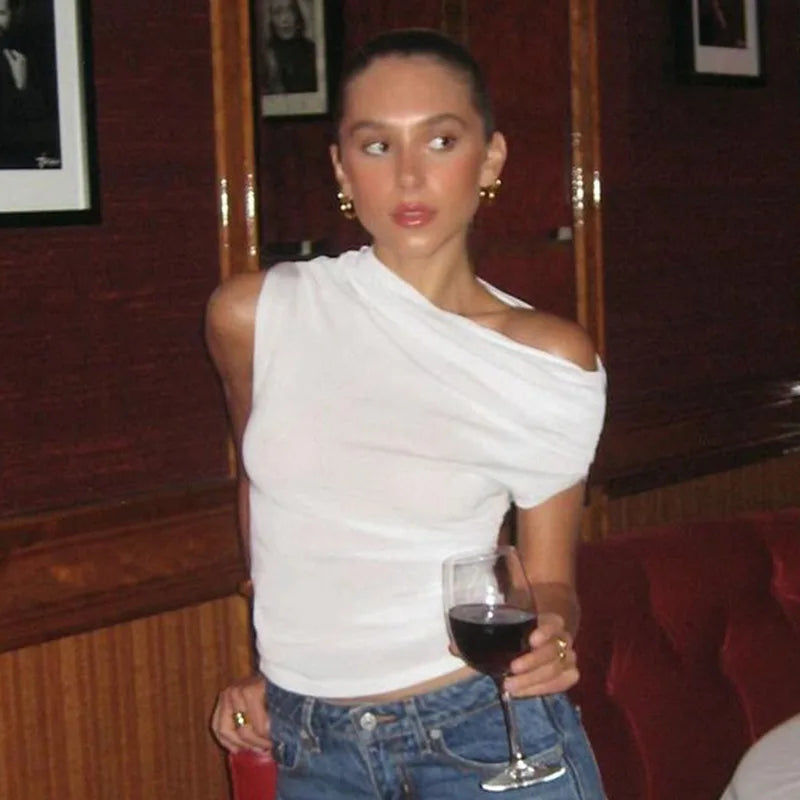 Talenza Sexy One Shoulder Tops Womens Summer Fashion Hot Girls Backless Pleated Slim T-Shirt Casual Office Lady Party Tops Women