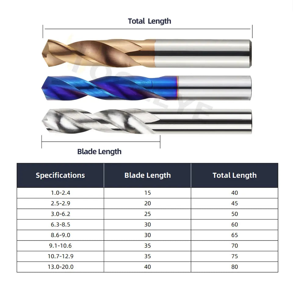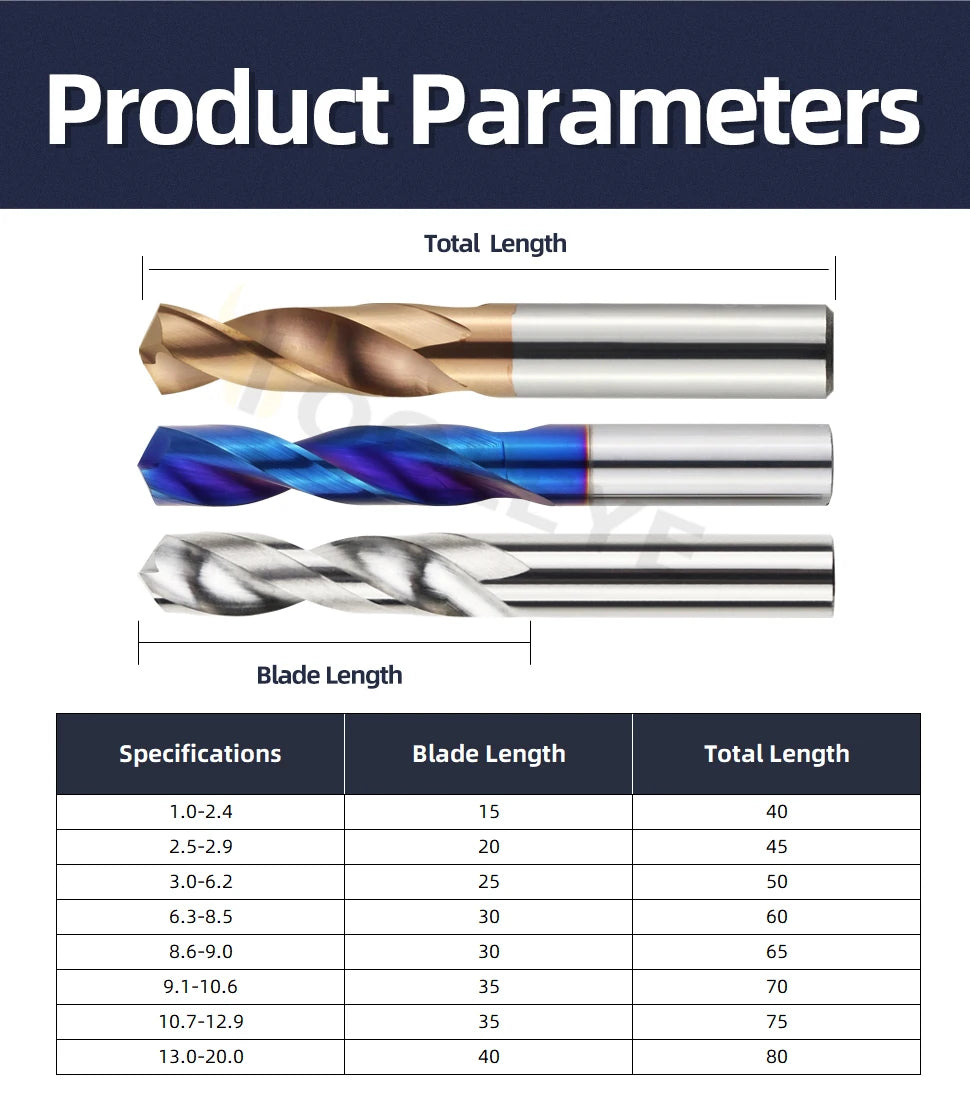 TOOLEYE Hartmetallbohrer Hartmetallbohrer Wolframstahl Spiralbohrer für Metallbearbeitung CNC-Drehmaschine Bohrwerkzeuge 1,0–20,0 mm