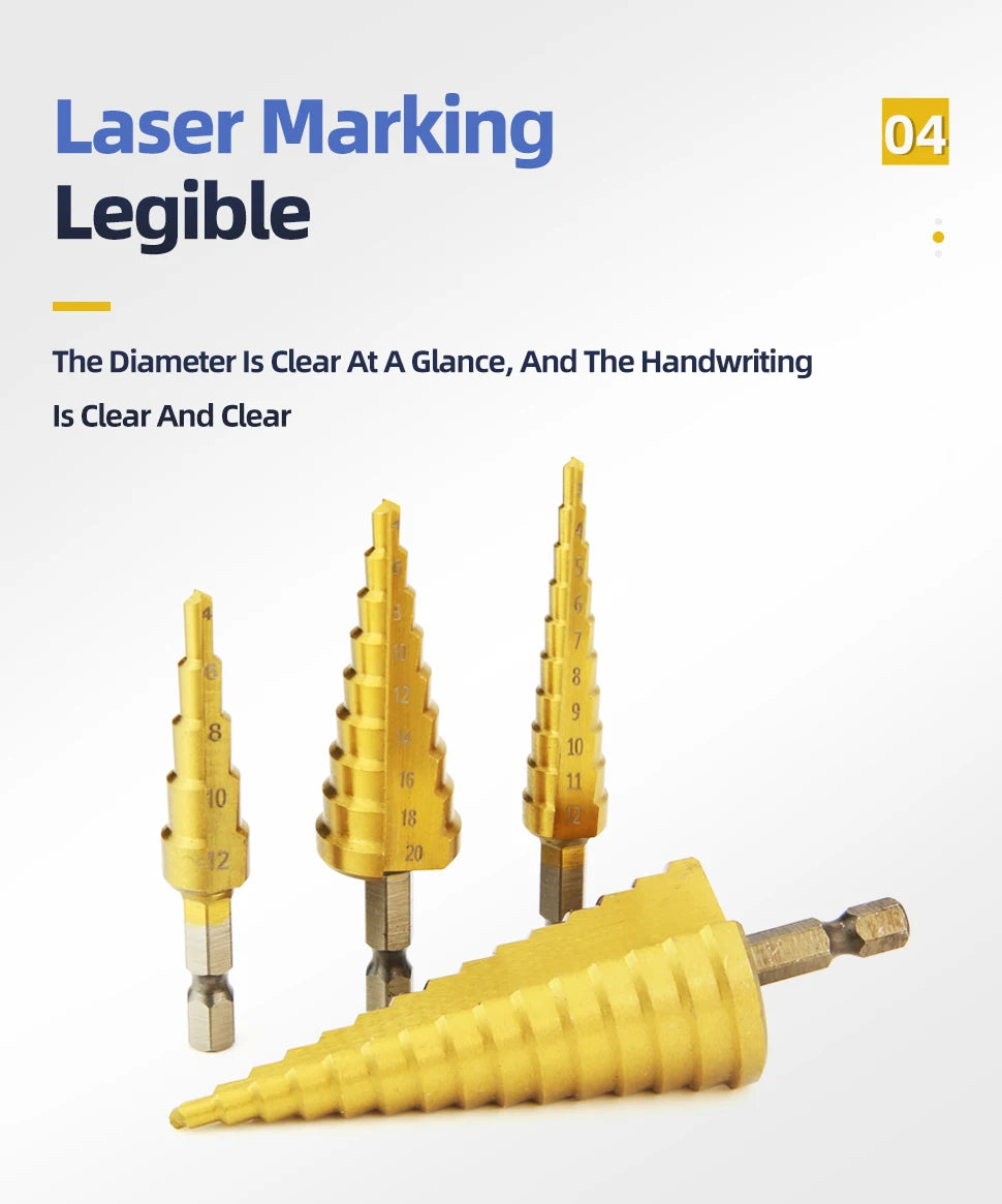TOOLEYE HSS Titan Stufenbohrer Bühnenbohrer für Metall Holz Hochgeschwindigkeits-Stufenbohrer-Set Elektrowerkzeuge 3-12 4-12 4-20 4-32 mm