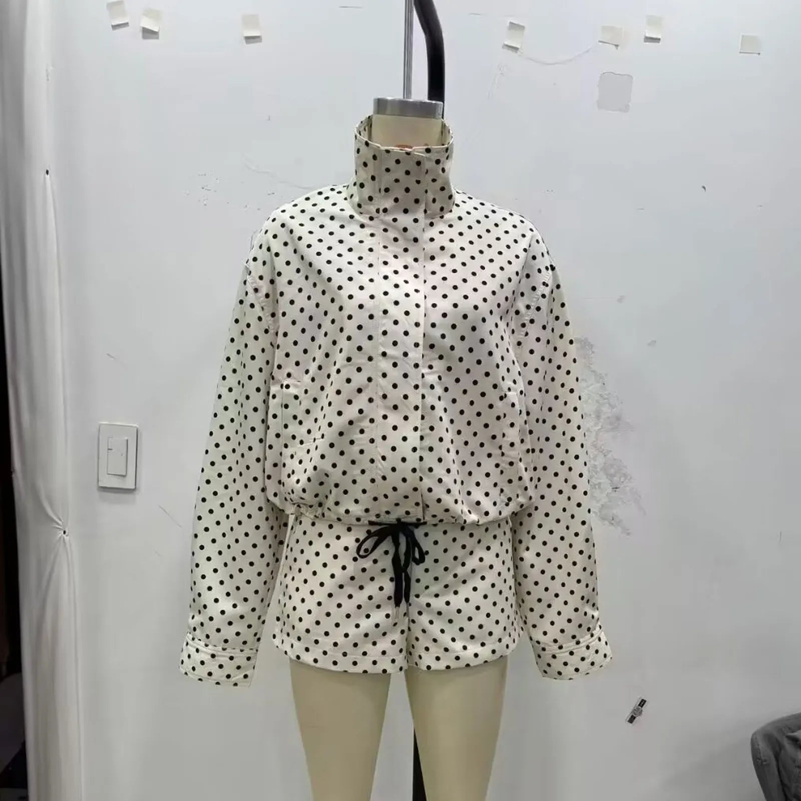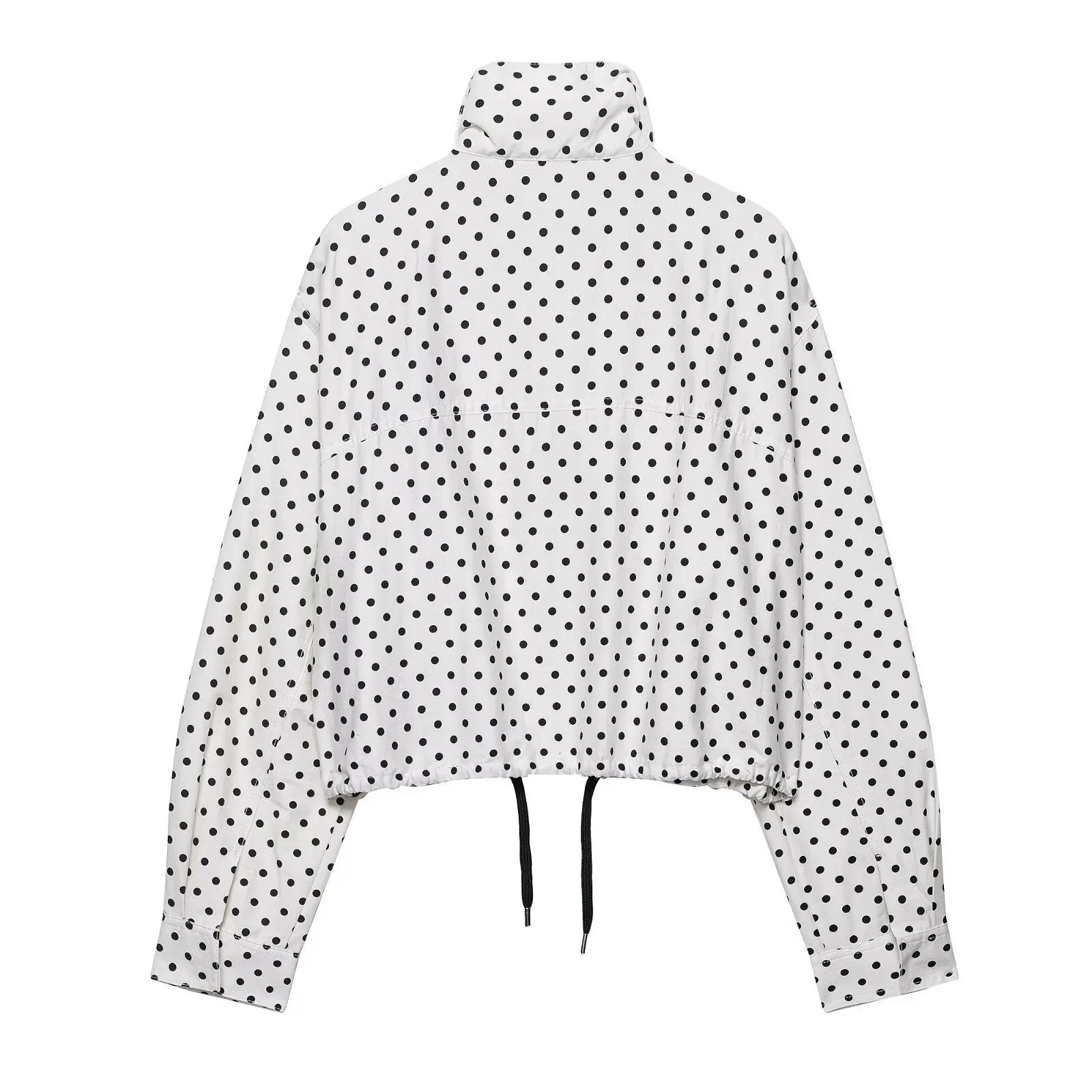 TRAFZA Herbst Polka Dot Gedruckt Jacke Für Frauen Lange Ärmel Rollkragen Zipper Mit Taschen Kordelzug Lose Vintage Mäntel