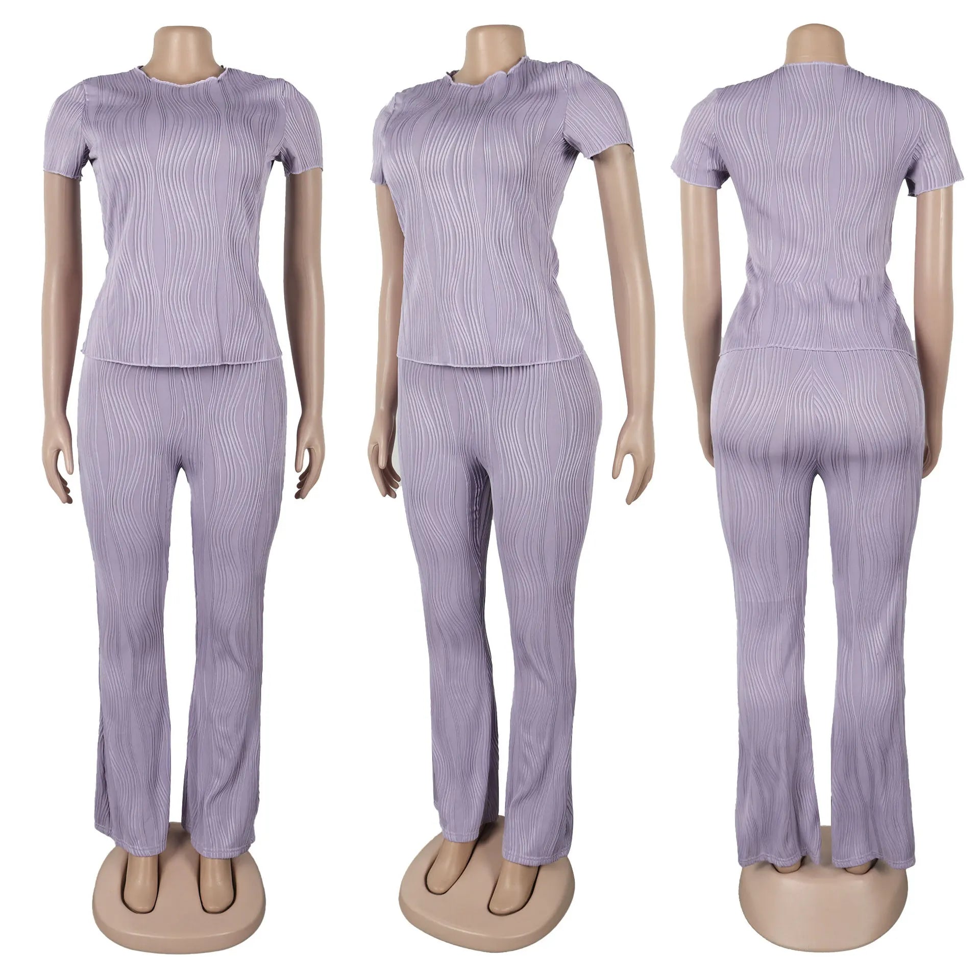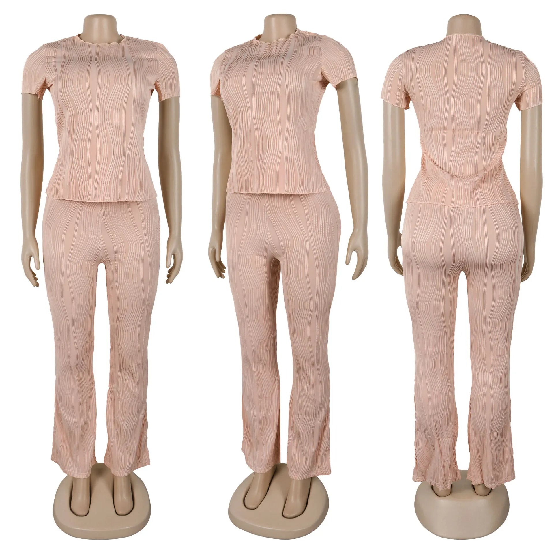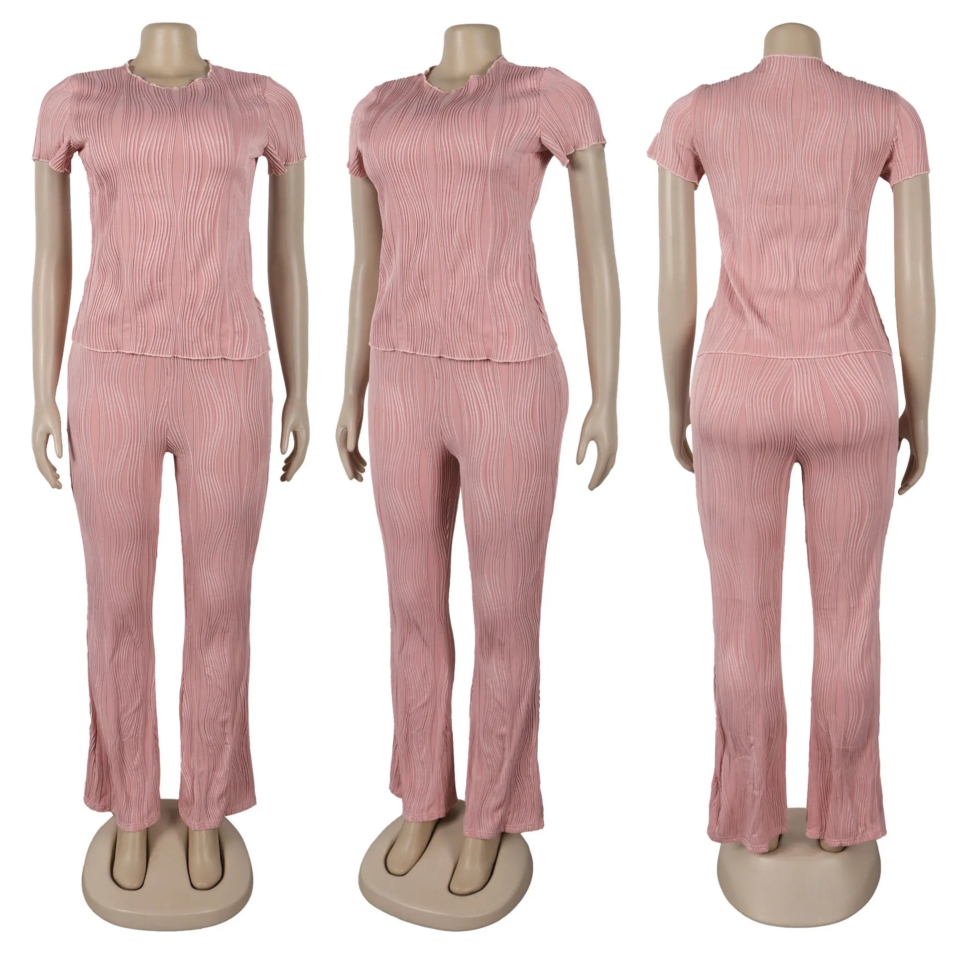 Two Piece Sets Women Pants Set Matching Sets Short Sleeve Solid Casual Tops Long Pants High Waist Bodycon Y2k Streetwear 2025