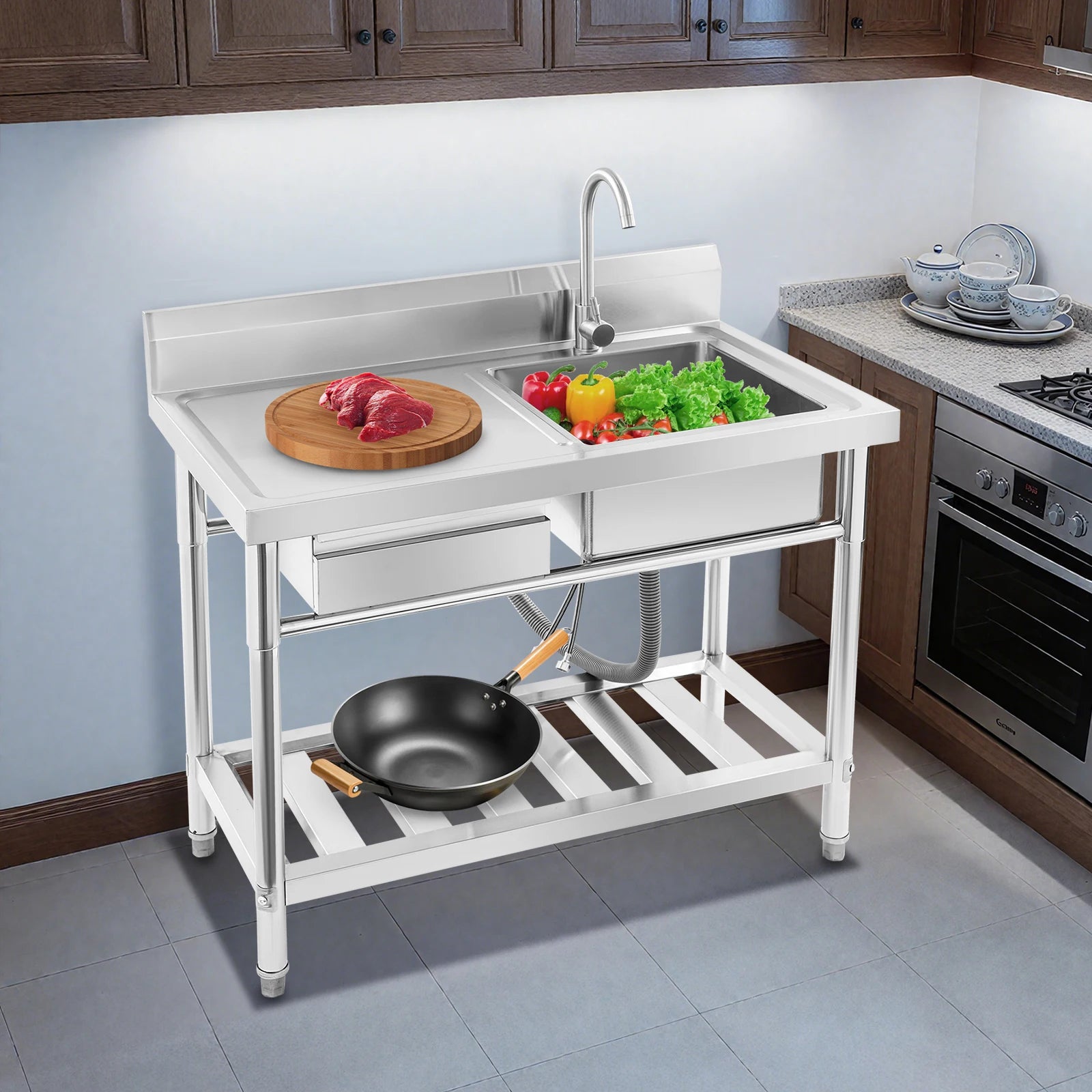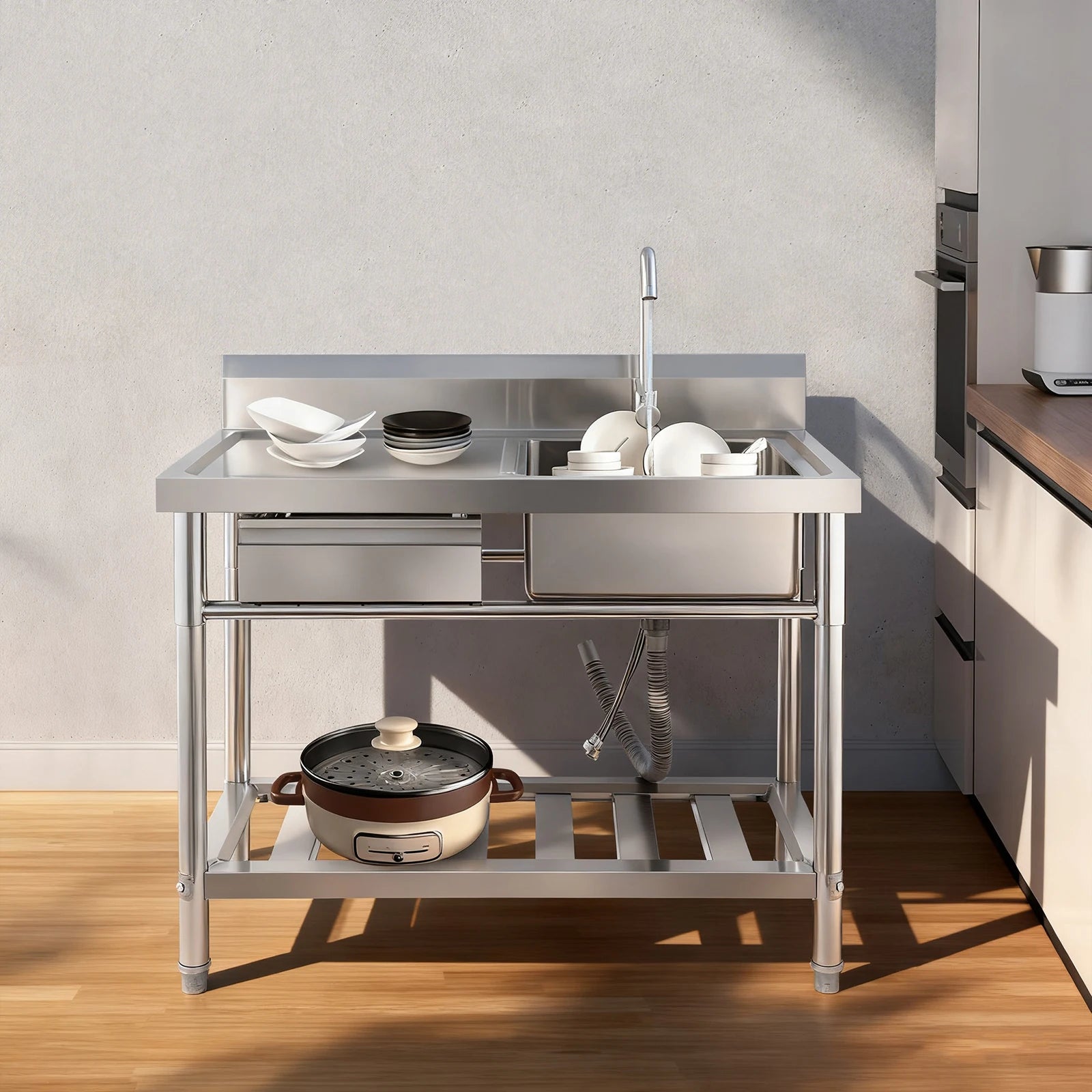 Unabhängiges Einzelwaschbecken für die Küche, Waschbecken aus Edelstahl für Küche, Badezimmer, maximale Tragfähigkeit 150 kg
