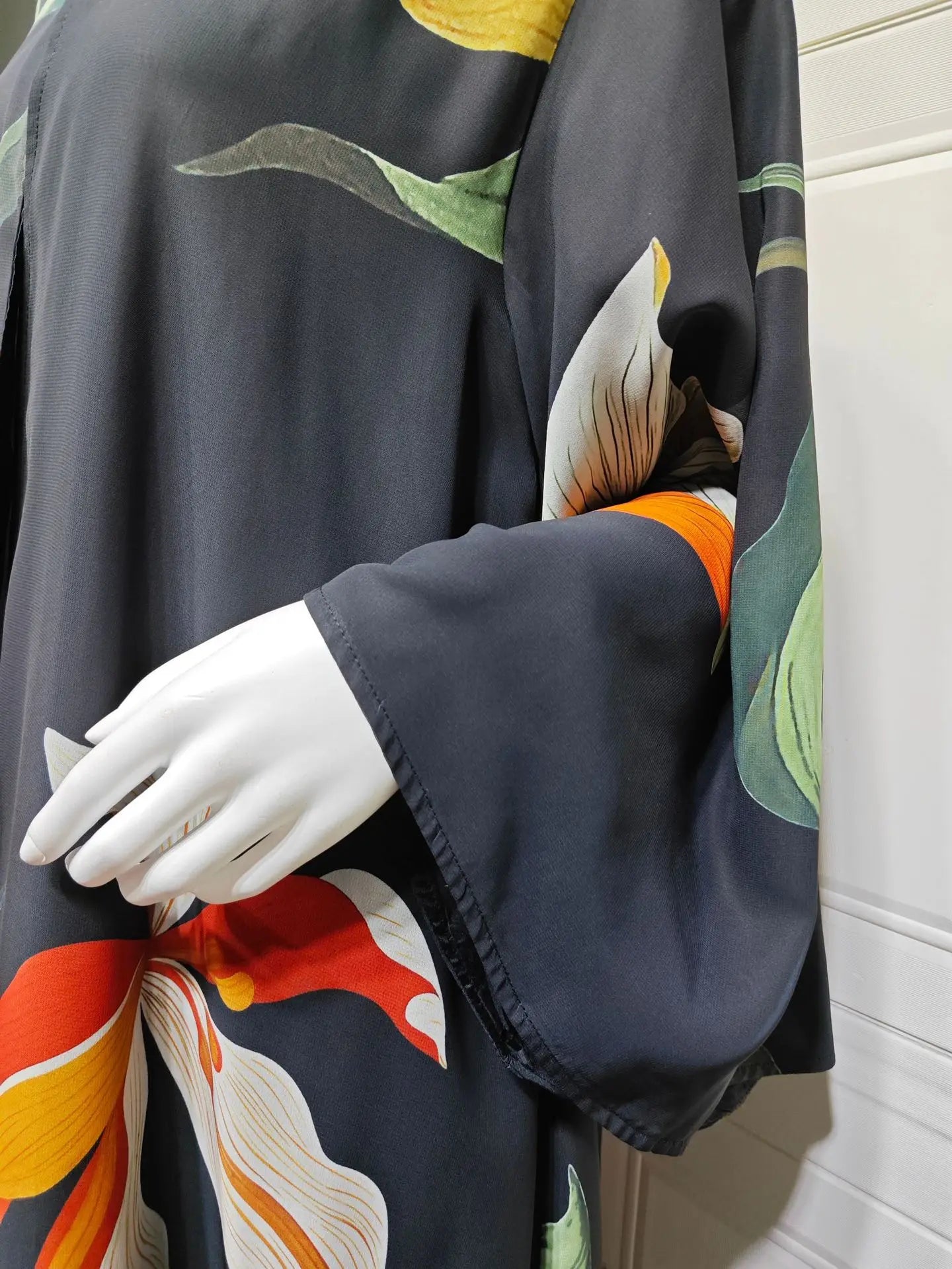 Uni Dubai Fashion Floral Print Open Abaya Muslim Elegant Cardigan With Hijab Scarf 2025 Feminine Clothes
