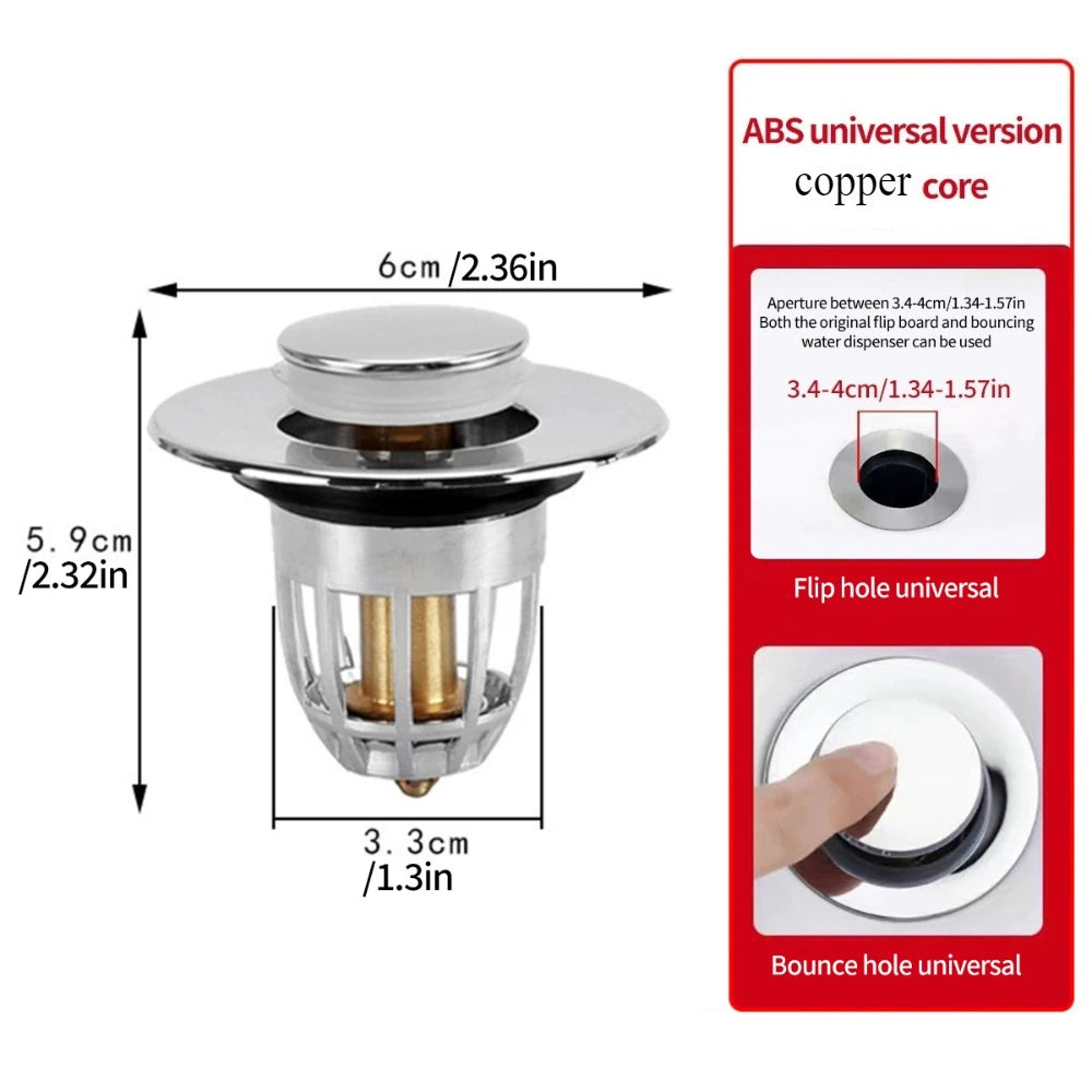 Universeller Pop-Up-Waschbeckenstopfen für Badezimmer, geruchsabweisend, zum Schließen von Abflussstopfen für Waschbecken-Zubehör, Haarfänger-Sieb
