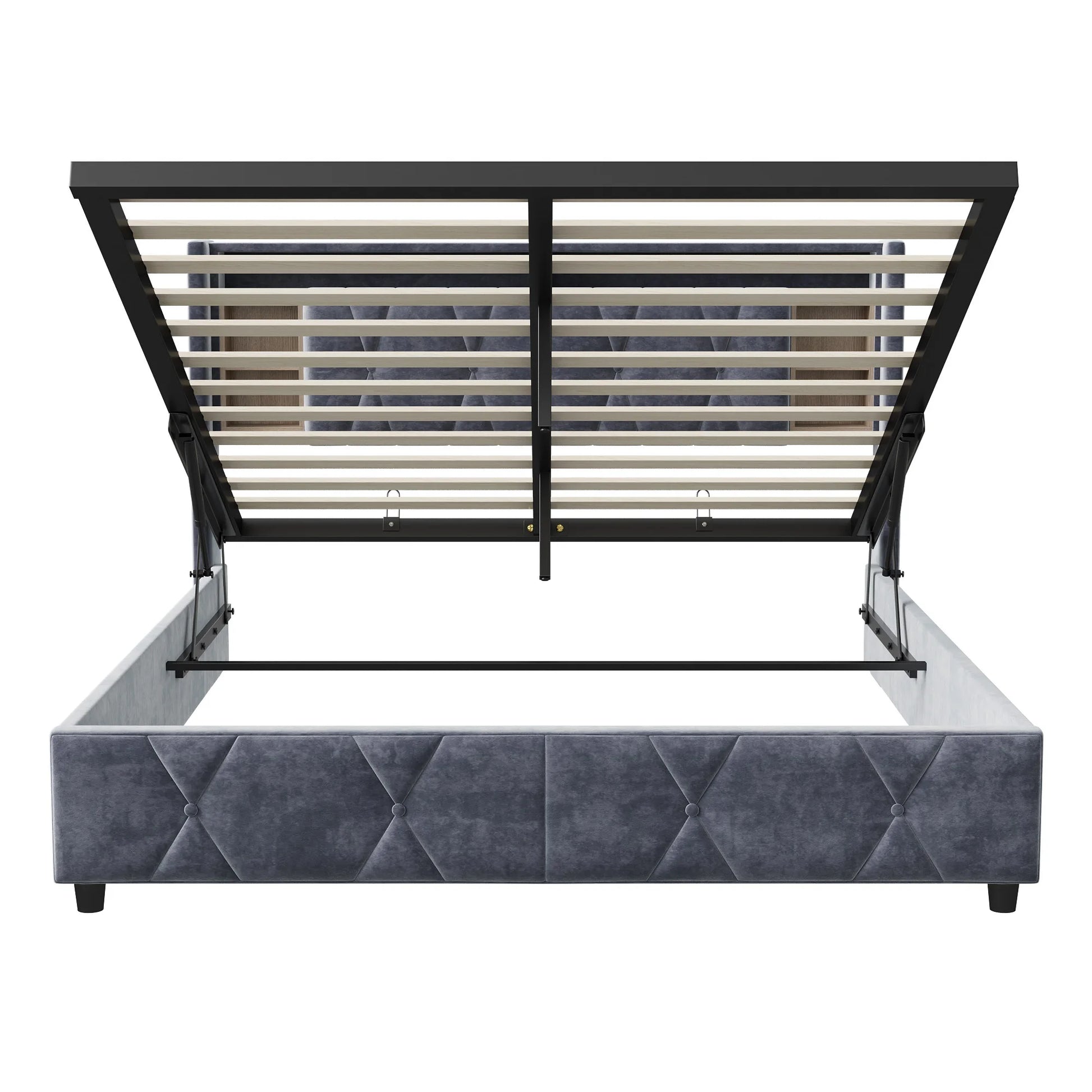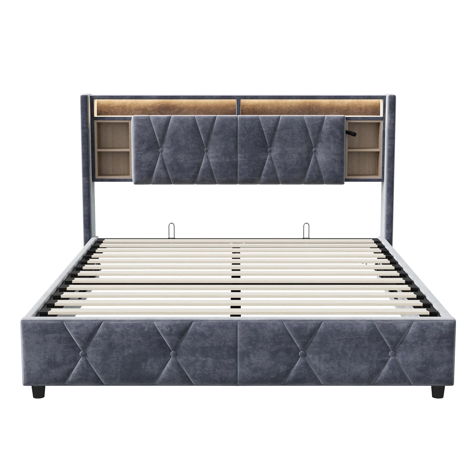 UrbanLuxe Bettgestell 140x200 cm mit LED-Lichtleiste und Dual-USB-Ladeanschluss, Bett mit Stauraum, Lattenrost, Samt, grau