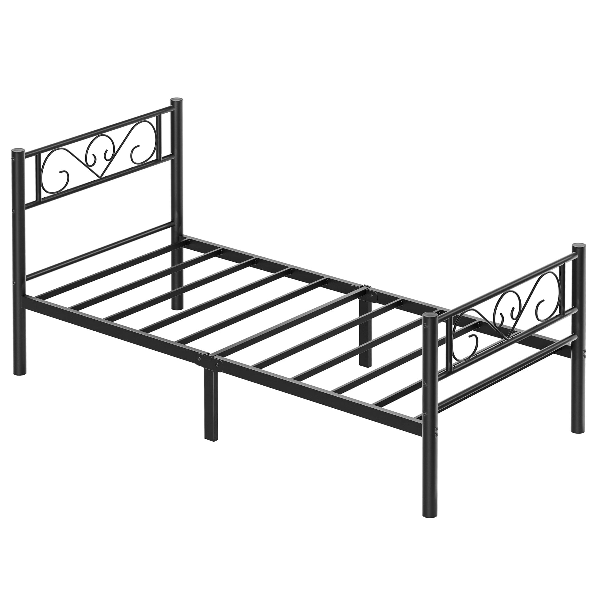 VASAGLE Bett 90 x 200 cm, Gästebett, Einzelbett aus Metall, Bettgestell, Bettrahmen, Metallbett, einfache Montage, tintenschwarz