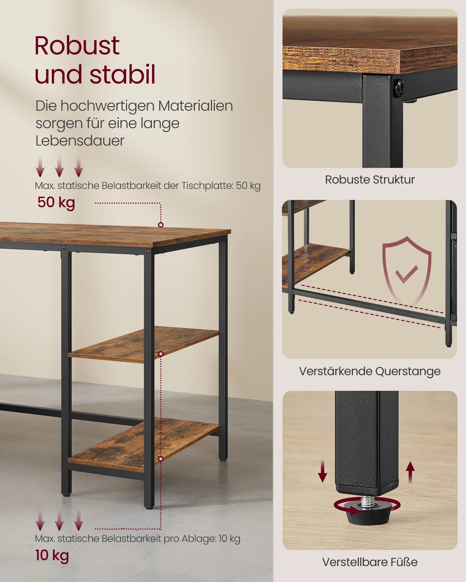 VASAGLE Computertisch, Bürotisch, Schreibtisch, mit 3 Ablagen, 2 Schubladen, 60 x 140 x 76 cm, fürs Büro, Wohnzimmer