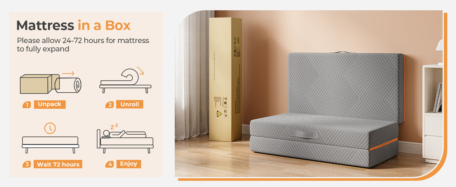 Vesgantti Klappmatratze, 15 und 8 cm große faltbare Gel-Memory-Schaum-Matratze, dreifach faltbar, für Reisen, Camping, Gästebett