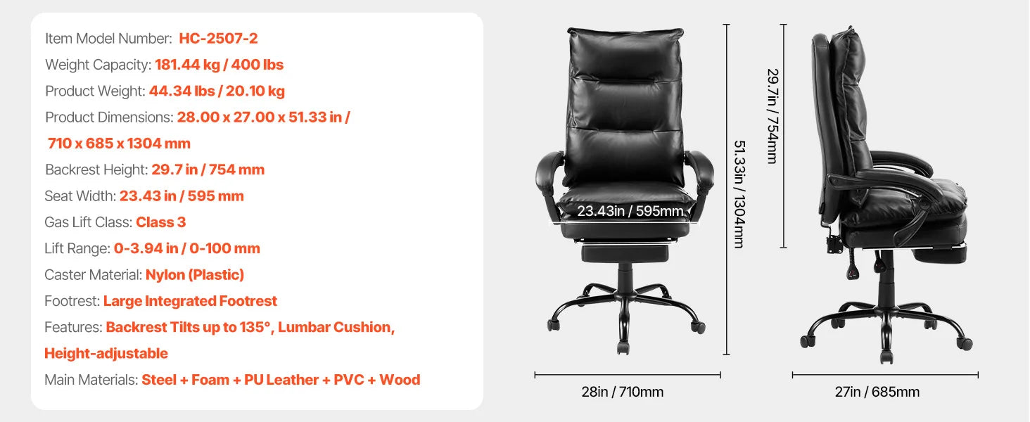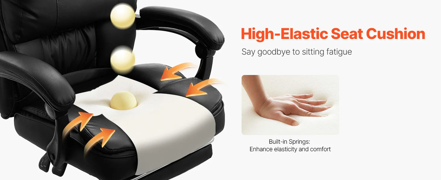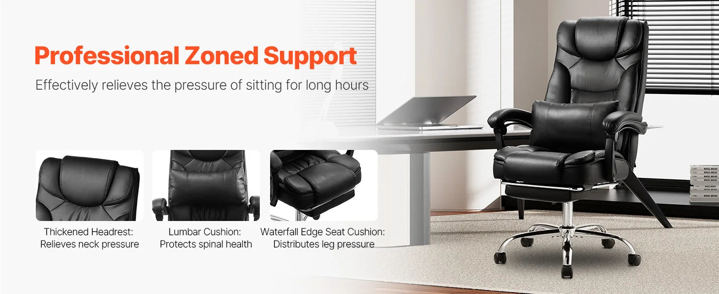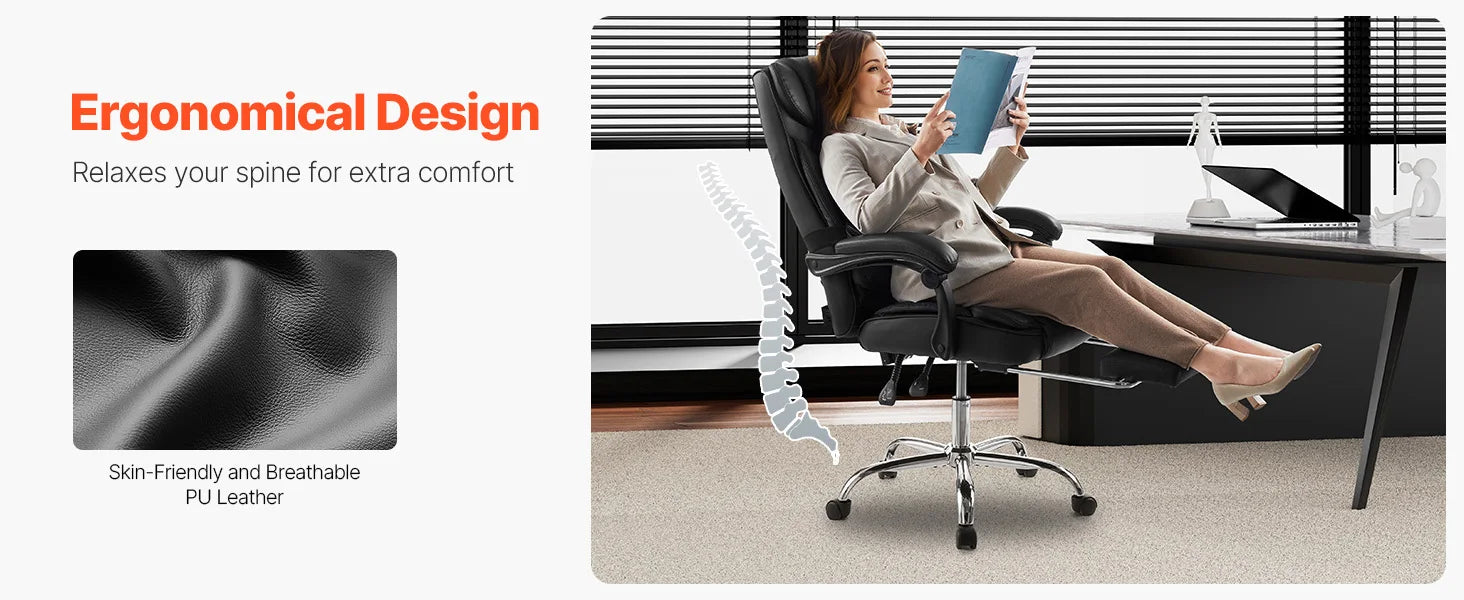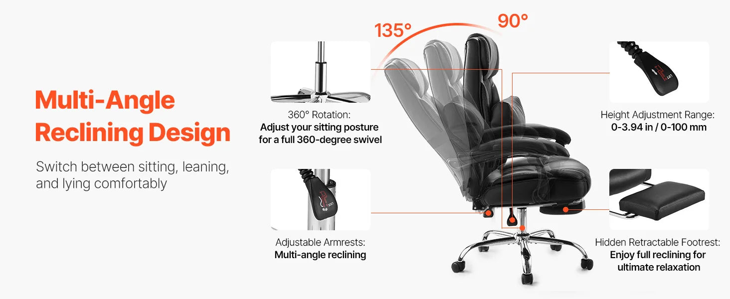 VEVOR Chefsessel Bürostuhl Drehstuhl mit hoher Rückenlehne & Fußstütze & Lendenkissen, ergonomischer Schreibtischstuhl mit 135° Neigung und einstellbarer Höhe, für Arbeit Arbeitszimmer Spielen