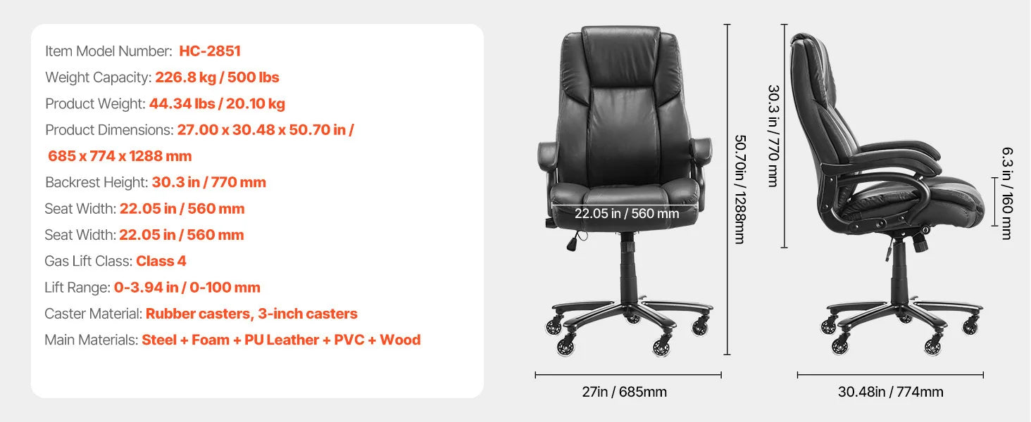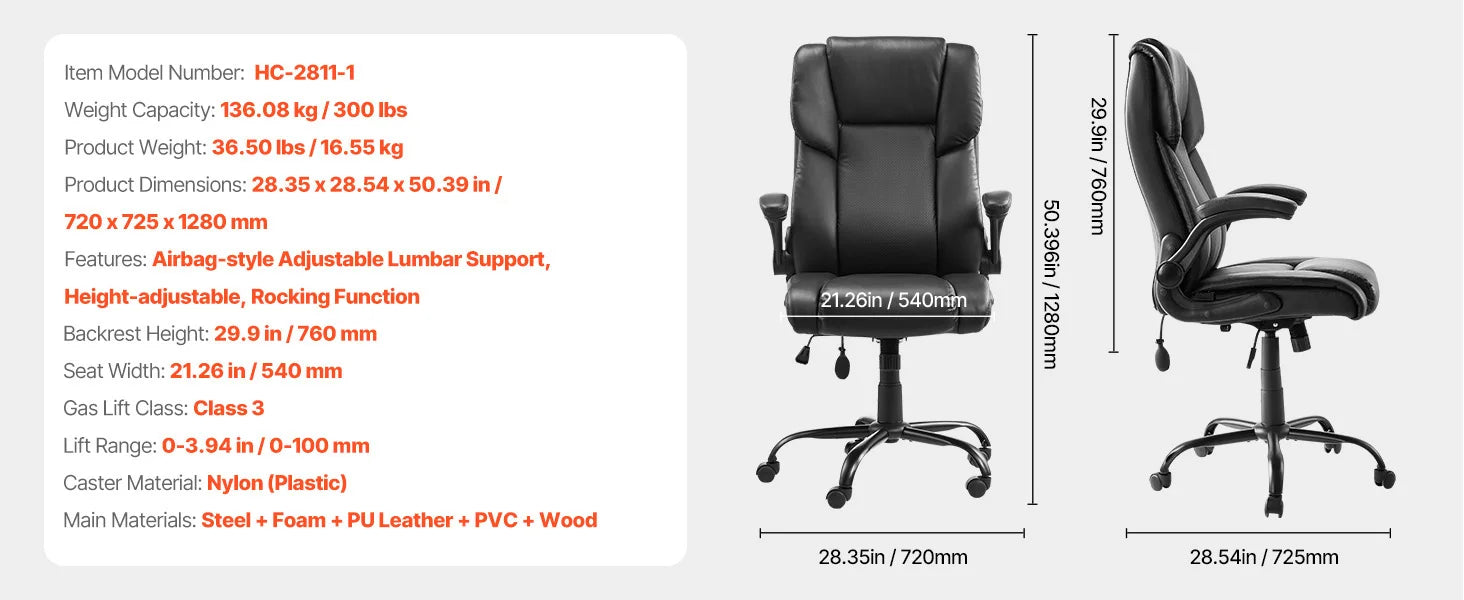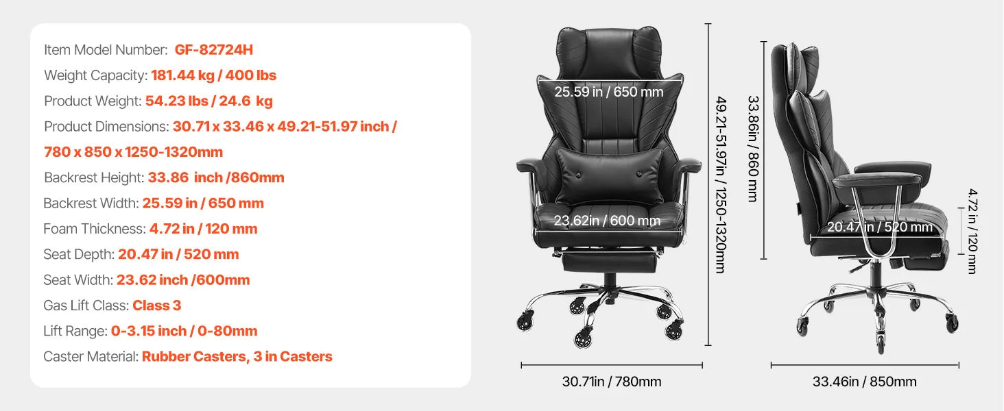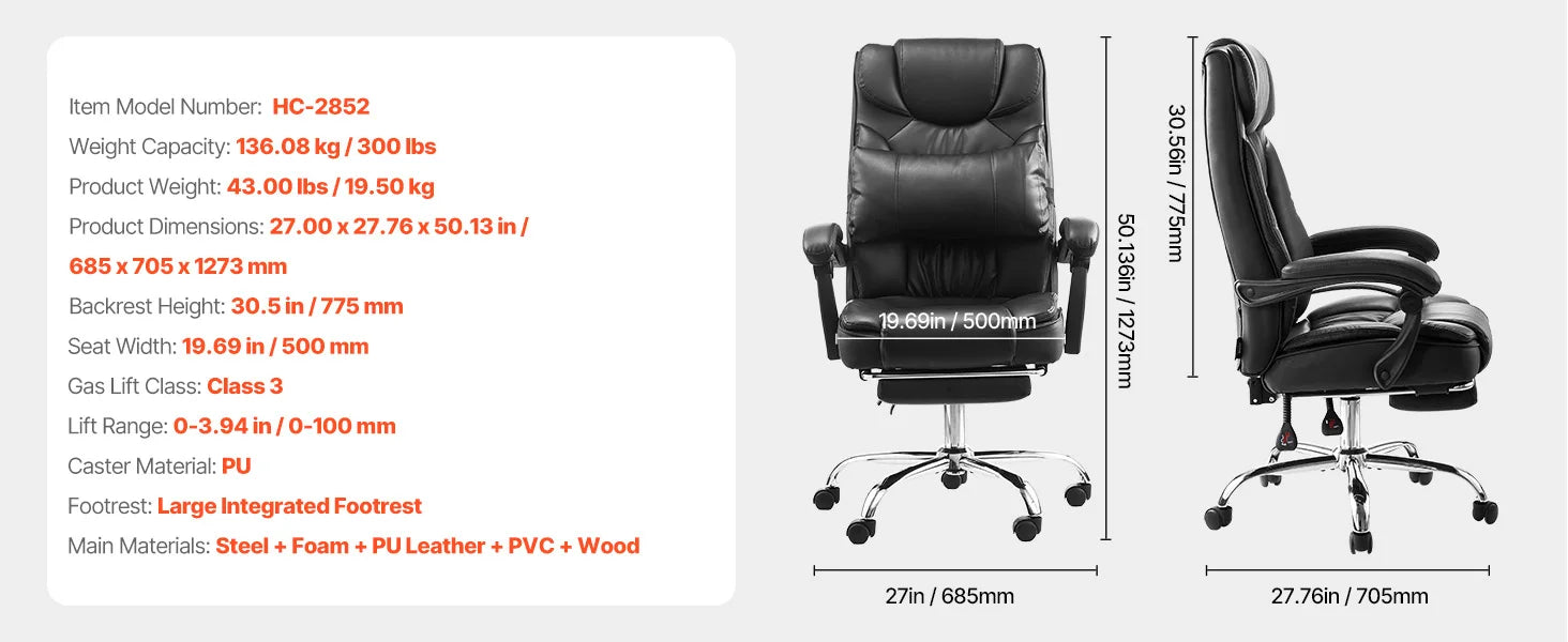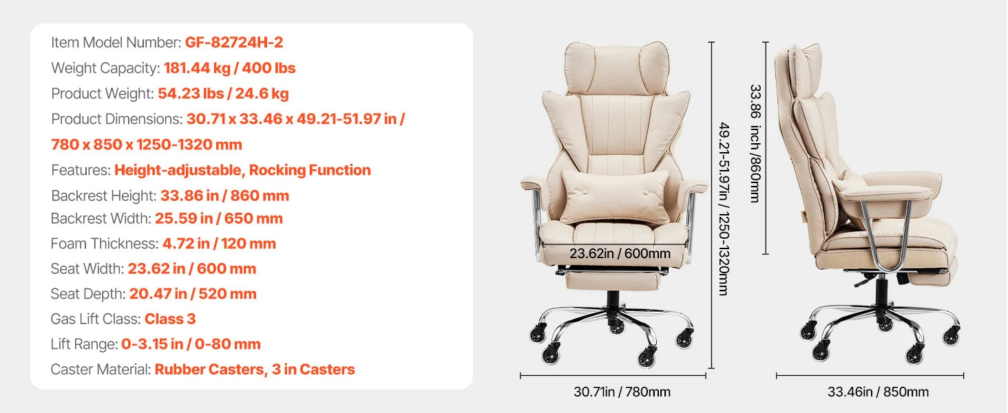 VEVOR Chefsessel Bürostuhl Drehstuhl mit hoher Rückenlehne & Fußstütze & Lendenkissen, ergonomischer Schreibtischstuhl mit 135° Neigung und einstellbarer Höhe, für Arbeit Arbeitszimmer Spielen