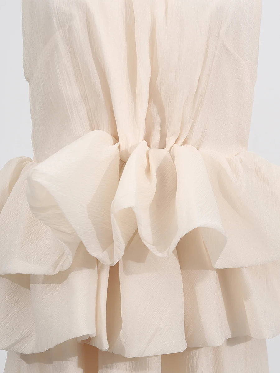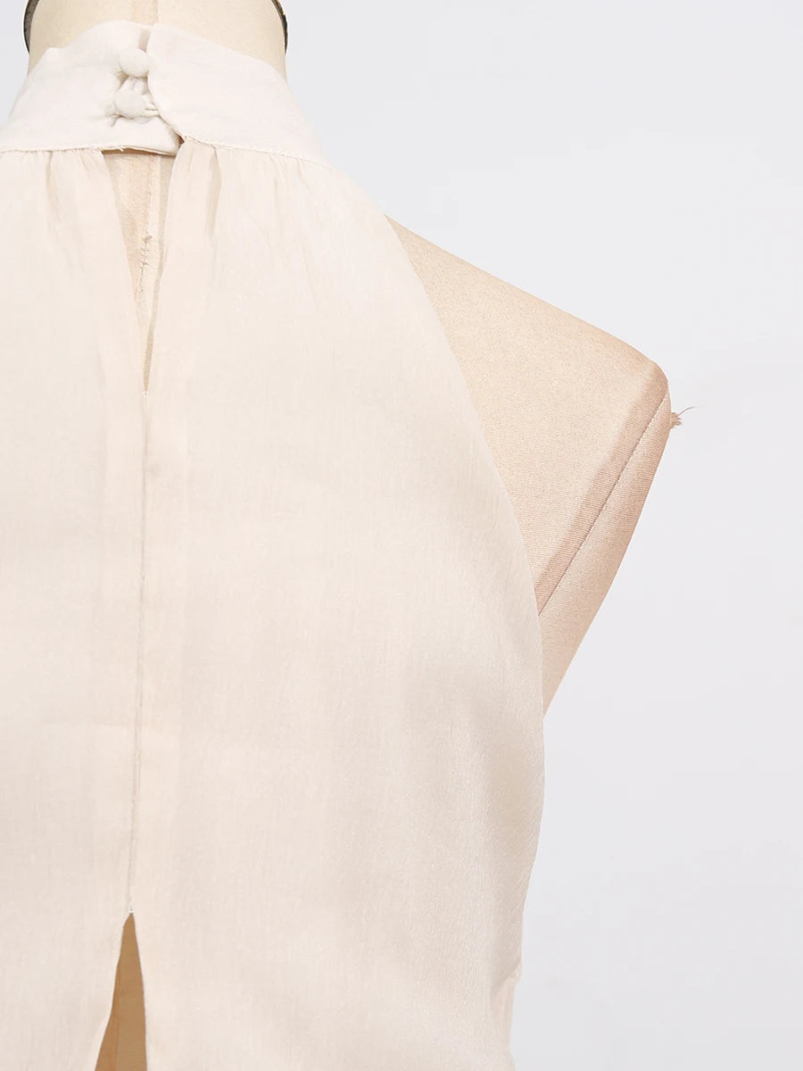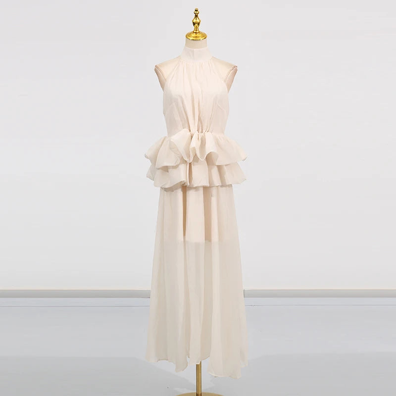 VGH Solide Abend Gespleißt Rüschen Maxi Kleider für Frauen High Neck Ärmellose Tunika Temperament Zeremonie Kleid Weibliche Kleidung