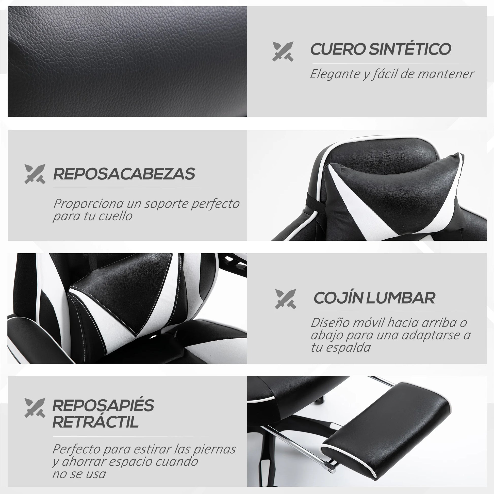 Vinsetto Ergonomischer Rennstuhl mit verstellbarer Rückenlehne, 65 x 70 x 118,5–126,5 cm