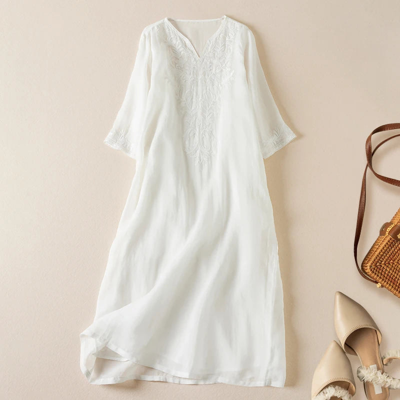 Vintage bedruckte Frauen kleider neue französische lose V-Ausschnitt Kleidung Kurzarm Sommer A-Linie Stickerei Empire Kleid