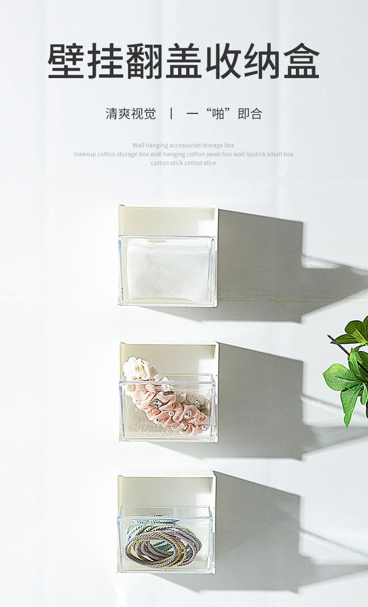 Wandmontierte Flip-Aufbewahrungsbox für das Badezimmer, nicht perforierte Aufbewahrungsbox für Wattestäbchen