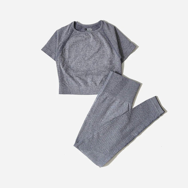 WAREBALL Seamless Yoga Set Women Workout Gym Clothes Fitness Short Sleeve Crop Top Shirt High Waist Leggings Pants Sports Suits