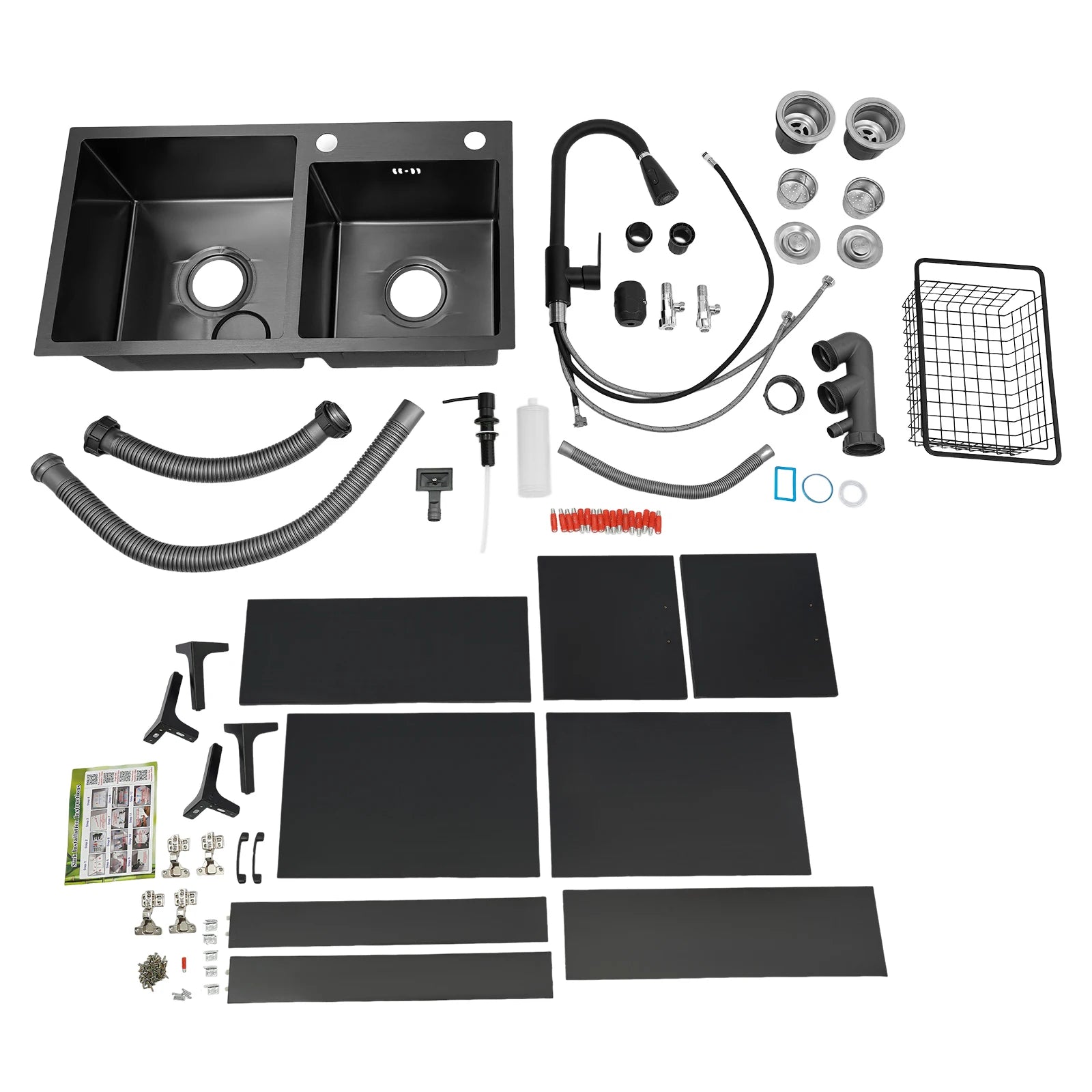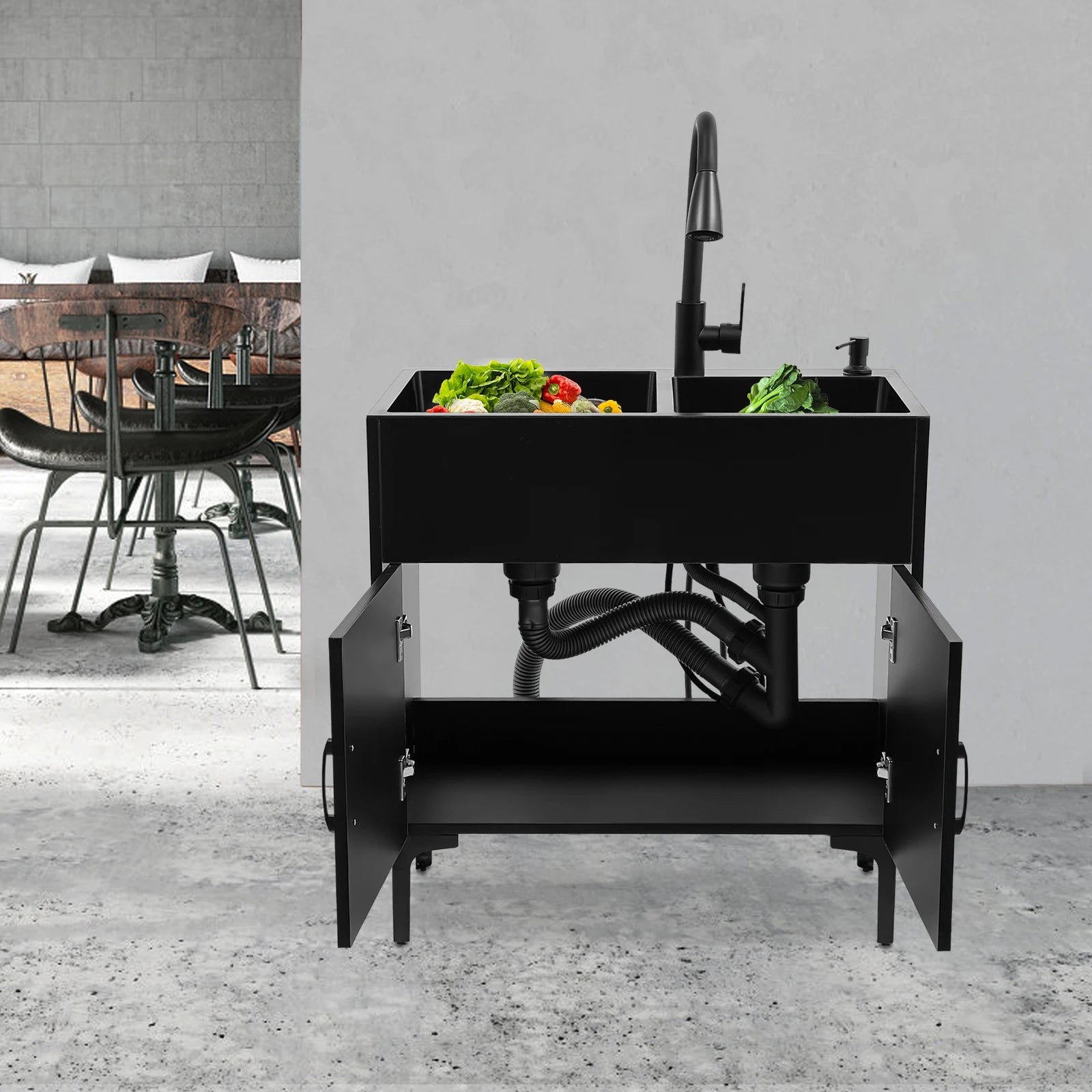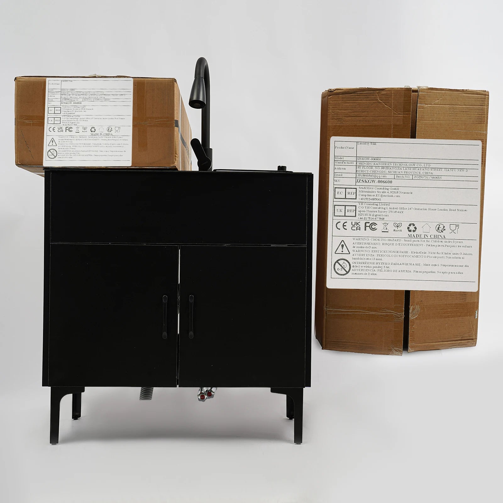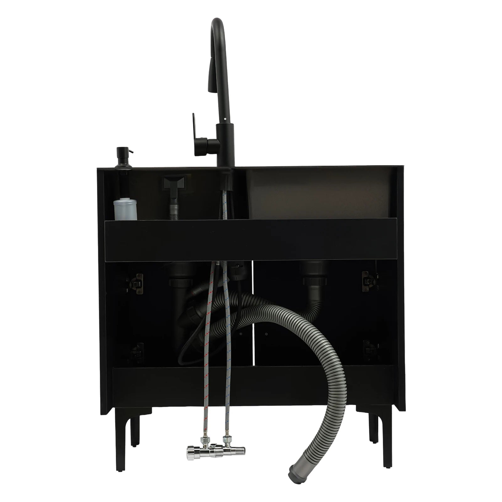 Wäschewaschbecken aus Edelstahl 201, Wäschewaschbecken mit ausziehbarem Wasserhahn, Waschbecken mit Schrank für Küchen, Restaurants, Dessertgeschäfte